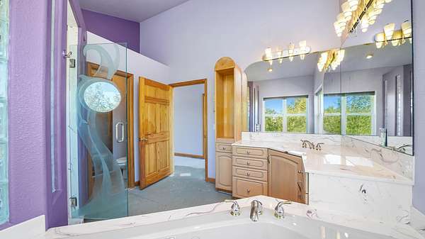 - Ceiling Fans, Jetted Tub, Kitchen Dining Combo, Main Level Primary, Pantry, Vaulted Ceilings, Walk In Closets, Walk In Shower, Wet Bar, Window Treatments