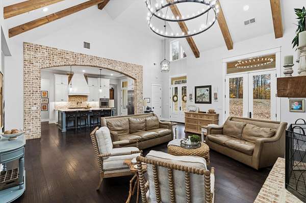 Location! Location! 2021 French Country Dream Home has all the Modern Updates You're Looking for-4 Acres-4005 SF-4 BR 4 1/2 Baths+Bonus Room+Office-All Bedrooms Down & All Bedrooms have En Suite Baths (See Floorplans in Pics)-Sparkling Saltwater Gunite Pool with Waterfall-Soaring Ceilings w-Cedar Beams-Wood Burning Fireplace-Amazing Views of 4 Beautiful Ares-Chef's Kitchen-Professional SS KitchenAid Equipment to include 6 Burner Gas Range/Flat top & Separate Rotisserie Oven-Quartz Countertop-Seated Island-THE MOST AMAZING PANTRY-Hardwood Floors Throughout-Primary BR is a Dream with LUX Spa/Bath-Soaking Tub-Barrel Ceiling-Huge Shower-Custom Closet-Office has Custom Built In Shelving-Large Laundry-MudRoom w-Built In Lockers with Electrical Outlets-Bonus Room with Full Bath Up (or 5th BR) Covered Back Porch with Outdoor Fireplace-See Features List in Pics-Everything is Just 4 Years Old-The One You've Waited For!