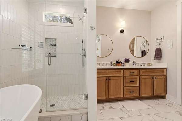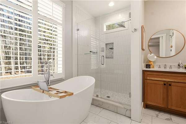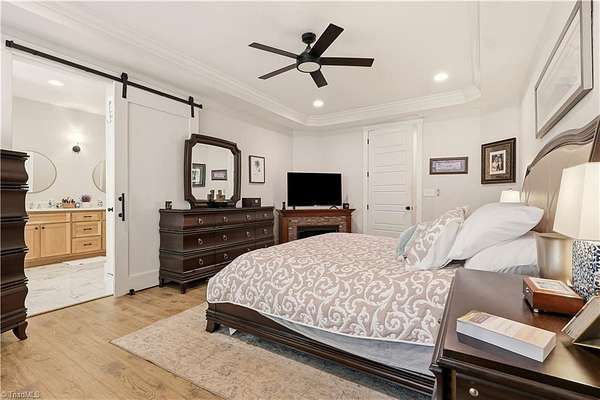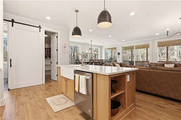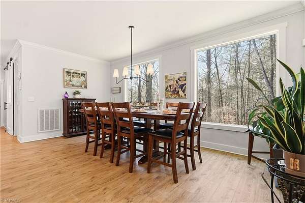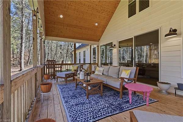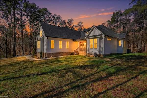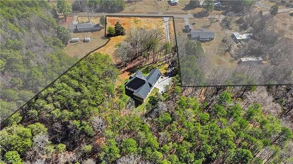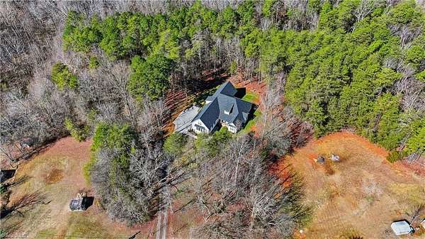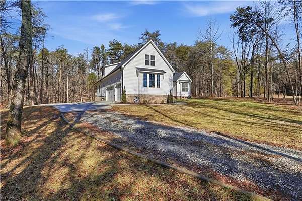 Experience refined country living in this breathtaking modern farmhouse set on 11.80 mostly wooded acres, ideal for hunting, trail riding, or simply enjoying peaceful privacy. Offering 4 bedrooms, 3.5 baths, and an oversized 3-car garage, this home blends space & sophistication effortlessly. Grand 8-foot interior doors open to a light-filled layout with expansive picture windows & serene wooded views. The designer kitchen showcases custom cabinetry, a large island with apron sink, walk-in pantry, premium KitchenAid appliances including a gas range with wood hood, flowing into a warm living area anchored by a shiplap gas fireplace & opening to an oversized covered porch. The main-level primary suite features trey ceilings, a spa-like freestanding soaking tub, custom tile shower with frameless glass, dual vanity, & a spacious walk-in closet. Upstairs offers a fourth bedroom, full bath, two massive bonus areas, and an oversized office, providing exceptional flexibility for work or guests.