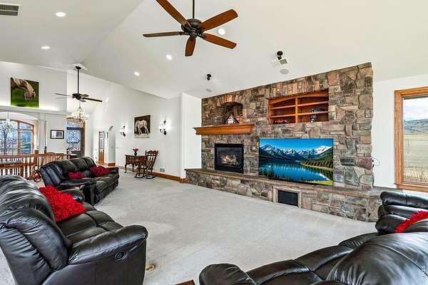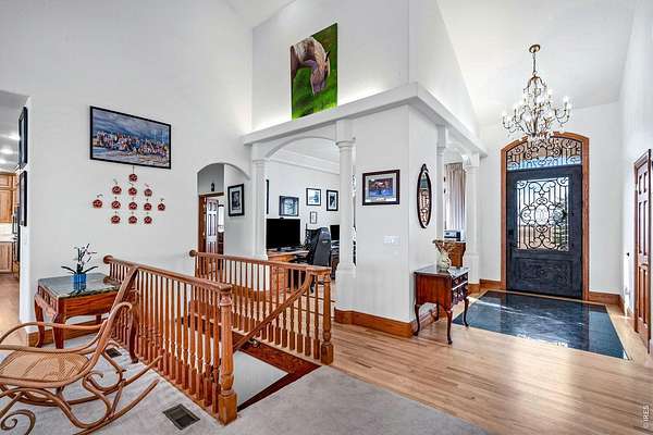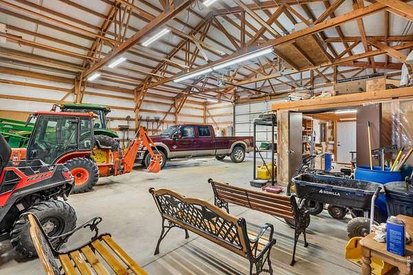 A true legacy estate on 35.60 acres! This exceptional home offers privacy, space, and long-term versatility. Beautifully remodeled inside and out and designed for easy entertaining, this fully integrated smart home puts control at your fingertips, with WiFi-enabled systems for lighting, climate, security, and more. Step inside to a sun-filled main living area that makes an unforgettable impression with well-defined zones, soaring ceilings, and large Andersen windows that flood the home with natural light and frame stunning views of the surrounding acreage. This area serves as the heart of the home, featuring whisper-quiet whole-house fans, a remote-controlled gas fireplace, and surround sound that create a space ready for both relaxation and entertainment. The showpiece kitchen is built to impress with premium GE Cafe and Bosch appliances, an oversized layout, and designer finishes. The fully finished walkout basement offers incredible flexibility with 9-foot ceilings, multiple bedrooms and baths, spacious living areas, and a dedicated theater room. Step outside to a thoughtfully designed outdoor space featuring a Trex deck with built-in speakers, stamped concrete patio/firepit area, and a complete landscaping and sprinkler system overhaul. The impressive 60' x 40' insulated barn offers exceptional versatility, complete with an RV-size door, office space, and a vehicle lift. Owned solar panels provide long-term energy efficiency, while a whole-property natural gas generator offers peace of mind and reliability during outages. Additional upgrades include three new HVAC systems with humidifiers for year-round comfort, along with a heavy-duty concrete drive connecting the home and barn. Rare acreage, serious improvements, and endless ways to live it, don't let this one get away! County-approved subdivision potential and a newly added well create valuable flexibility for the next owner-whether building a second residence or selling a portion of the property.
