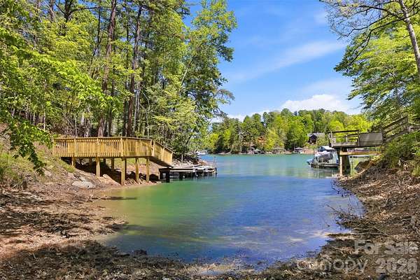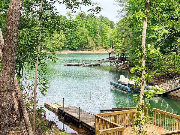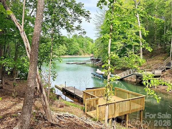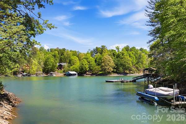 Long-range water views and a fully equipped dock setup make this waterfront lot in SouthPointe stand out. Located at 4981 Camellia Drive (Lot 228), the property overlooks a quiet, protected cove with a view that opens up beautifully across Lake James. A platform dock, floating dock, and jet ski ramp are already in place-offering immediate access to the water without the wait. The setting provides both visual appeal and calm conditions for swimming, paddling, and boating. SouthPointe is one of the most established communities on Lake James and the only one with public sewer, along with high-speed fiber internet. Amenities include a lakeside clubhouse, pool, and walking trails. Convenient to downtown Morganton, where you'll find a growing selection of restaurants, breweries, shops, and daily essentials. Well-positioned waterfront lots with this combination of view, dock, and build-readiness are becoming increasingly limited on Lake James.