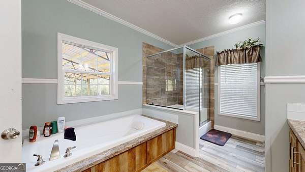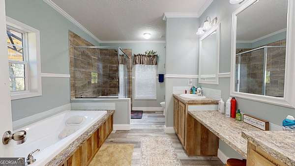 - Double Vanity, Separate Shower, Soaking Tub, Split Bedroom Plan, Walk-In Closet(s)