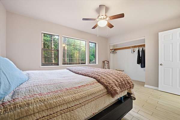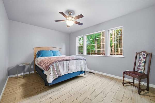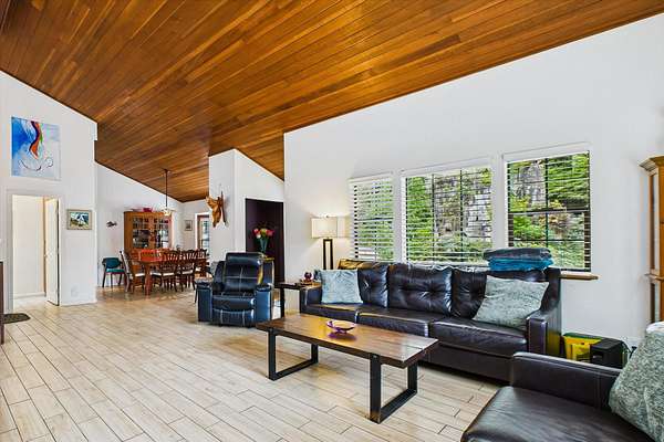 This custom 3 bed 2.5 bath home, tucked right off Cummings Rd. in the sunbelt of Eureka, and Freshwater School District sitting on 2 acres and in great condition! Featuring a well established green house at the front of the property, with fresh produce in abundance. Upon entry of the home, you are greeted by vaulted wood accented ceilings in the living room with a large wood burning stove and brick hearth, a nic dining alcove with bay window, and a feeling of comfort. Upstairs is a light and airy primary suite with newly tiled shower, double sinks, and extra large closet with access to an over 600 sq ft milled redwood deck with built in hot tub. The space brings a feeling of serenity, stargazing, and views to the gully below. The double deep garage and under deck storage is a bonus