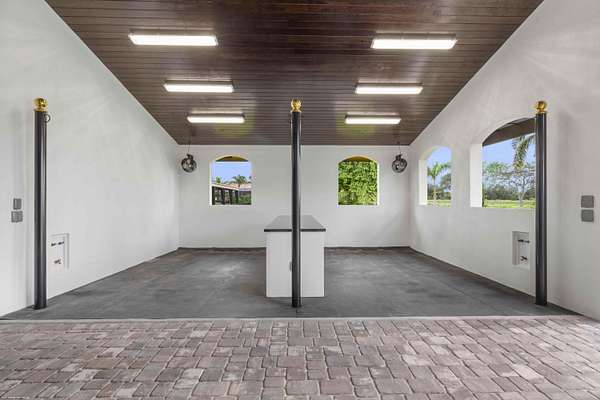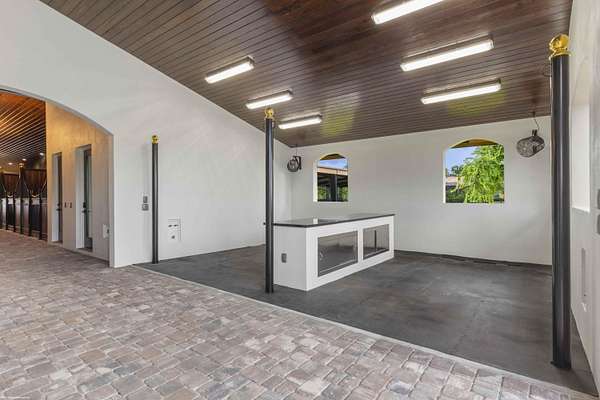 Top-Tier, Fully Renovated Equestrian Facility - Stalls are now being offered for the equestrian season at this ultra-luxury sport horse estate. PRICE REFLECTS THE SEASONAL STALL RATE. Located across the street from the bridle path and just a short hack to the south entrance of the show grounds, this 5-acre equestrian property offers a recently constructed 85' x 200' sub-irrigated COVERED ARENA (by Wordley Martin) equipped with mirrors, kick-boards and multiple viewing areas. The fully remastered 12-stall center aisle barn boasts a well appointed riders lounge with a full bathroom, partial kitchen and elevated inside-outside views of the riding arena. Designed with attention to detail, the barn is outfitted with all the bells & whistles, including a brand-new European stall system. The stately barn also features tongue-and-groove ceilings, elegant chandeliers, large center aisle fans and a new paver aisle way. The barn has 2 interior grooming/wash stations, 2 exterior wash racks, 2 a/c'd storage rooms (with direct exterior access), 2 tack rooms with individual laundry facilities, and a large well equipped feed room. Each stall is equipped with a fly-spray system, individual fans, water and lighting. All the wash stalls include hot & cool water. There is a studio grooms office with a full bathroom, bed, kitchenette and laundry facility. The barn is complete with functional window shutters for the stalls and roll down doors for the center aisle openings. Additional property features include a raised viewing area, a round pen, six paddocks, 1 RV hookup and separate automatic gated entry with ample parking & trailer parking for the stable. Up to 12 stalls available. $13,000 price is the seasonal rate per stall for a 4 month stay, $14,500 for a 5 month stay, $16,000 for a 6 month stay. Studio Office in the barn is also available, offered at the same rates. There is an 8 stall minimum. RV hookup available for $1,000/Month