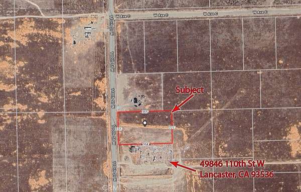 Immediate neighbor's address: 49850 110th Street West, Lancaster, CA 92536; NW corner: 34.788758, -118.325849