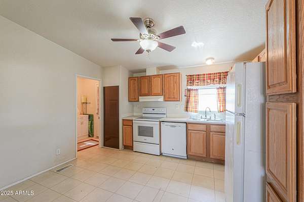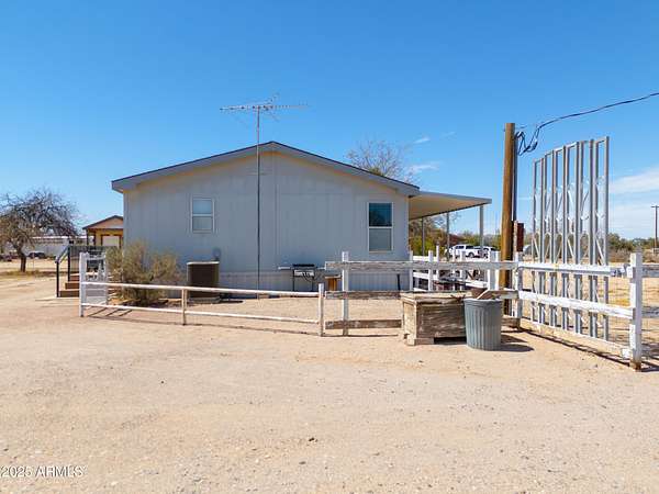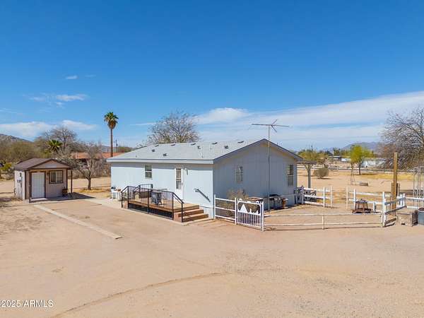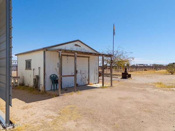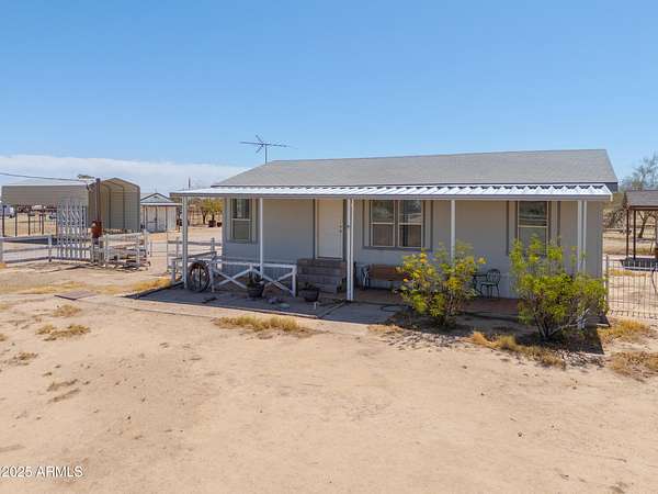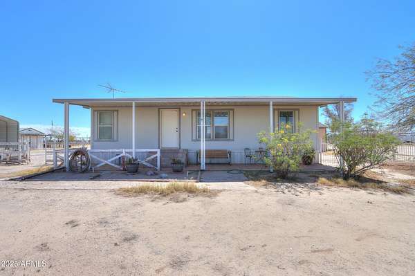 HUGE UPDATE! Home is 2003, NOT 1982!!! Bring your horses, toys, and vision! This Maricopa horse property offers a large irrigated lot with a spacious pasture, RV awning, multiple storage sheds, and a detached, air-conditioned laundry room. The home offers great bones and tons of potential, with a contractor's quote on hand for $25K in updates-including LVP flooring, new countertops, interior paint, new toilets, and ceiling fans. With grandfathered irrigation and plenty of room to roam, this is the perfect opportunity to create your dream setup just outside the city.