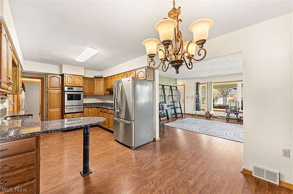 Well-maintained 3 bedroom, 1.5 bathroom brick ranch situated on 2.8 acres in Cortland. Inside, you'll find a solid kitchen and two generous living spaces, providing plenty of room to spread out. One living area features a cozy fireplace and sliding doors that lead out to a side patio, creating a great space to relax or entertain. The home also includes a walk-out basement, offering additional space and potential. A major highlight of the property is the three oversized outbuildings measuring approximately 65x35, 35x30, and 35x20, providing incredible room for hobbies, equipment, tools, or workshop use. One of the larger buildings can easily accommodate up to six vehicles, while another offers the perfect setup for camper or RV storage with plenty of flexibility for additional uses. Important updates include a newer furnace and A/C, a new water heater with filtration system, and a Generac generator, adding comfort and peace of mind. With plenty of usable land and a peaceful country feel, this is a rare opportunity to own a well-maintained home with exceptional outbuilding space.