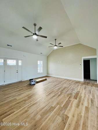 Escape to the peace and privacy of country living without sacrificing convenience. Perfectly situated on 5 scenic acres, this beautifully built one-level ranch offers the ideal balance of tranquility and accessibility-just a short drive to Virginia, Elizabeth City, and the Outer Banks.Thoughtfully designed with a split floor plan, this 3-bedroom, 2-bath home provides both comfort and privacy. Step inside and immediately feel at home in the bright, open living space featuring cathedral-style ceilings and abundant natural light. Durable luxury vinyl plank flooring flows throughout the main living areas, combining modern style with everyday practicality. The heart of the home is the spacious kitchen, designed to inspire gathering and connection. A large center island anchors the space, complemented by ample cabinetry, generous counter space, and a convenient butler's pantry-perfect for entertaining, meal prep, and effortless organization. Just beyond the kitchen, step out onto the rear patio and take in the peaceful views of your expansive property, where quiet evenings and wide-open skies become part of your daily routine. Each bedroom offers plush carpeting for added comfort, while the primary suite provides a private retreat within the home. Start your mornings on the covered front porch with a cup of coffee, surrounded by nature and the calm of country life. With no HOA restrictions, you have the freedom to create your own vision-whether it's adding a workshop, pool, garden, or simply enjoying the open space as it is. This move-in ready home offers modern simplicity, timeless comfort, and room to grow. Experience the lifestyle you've been dreaming of-schedule your private showing today. This home is even more impressive in person.