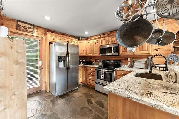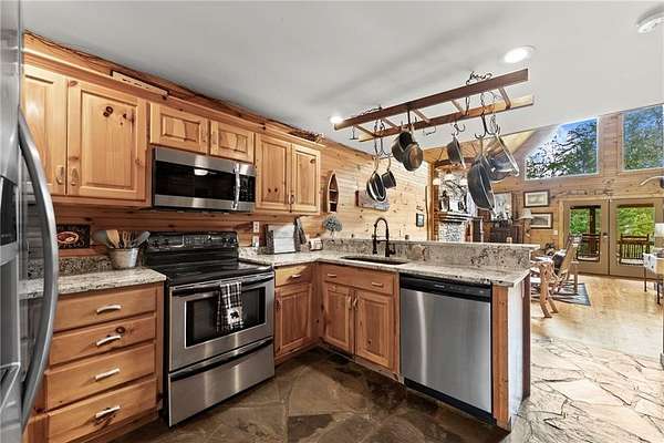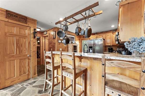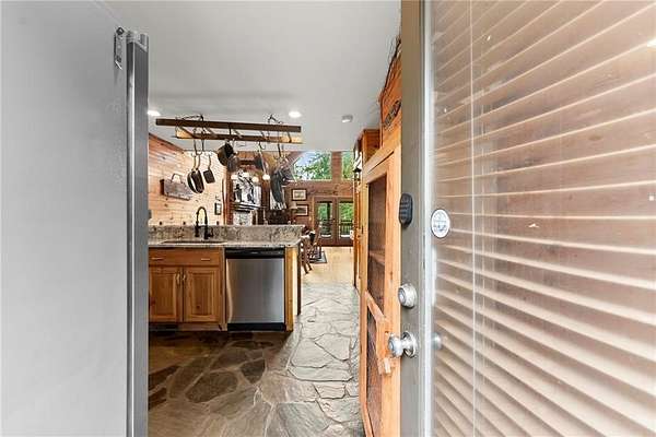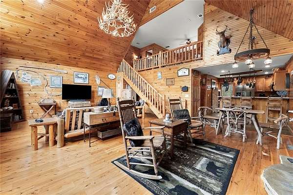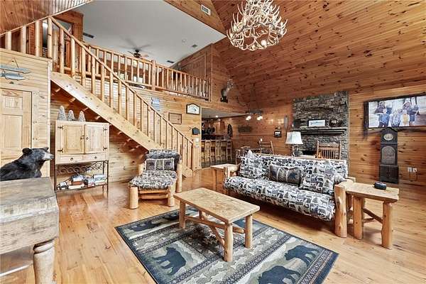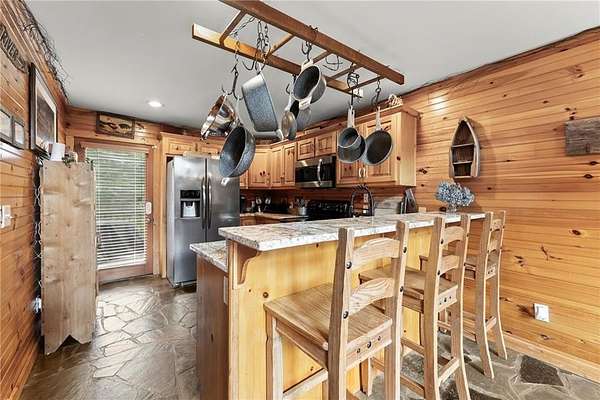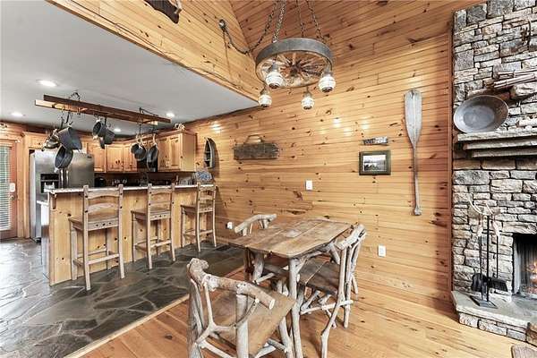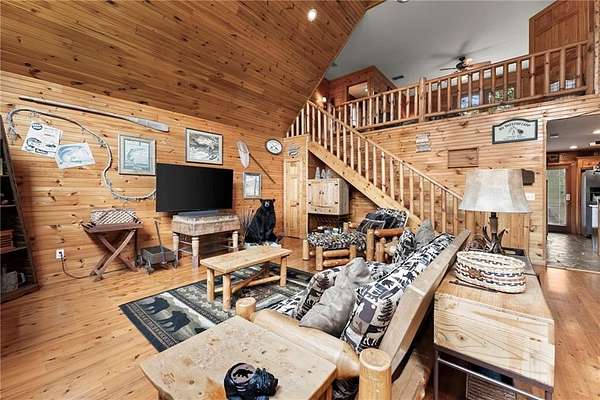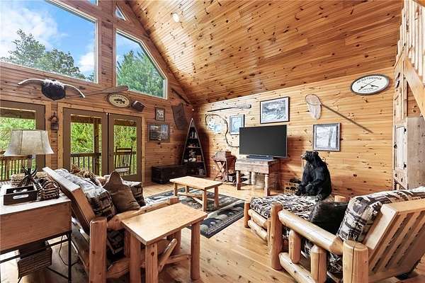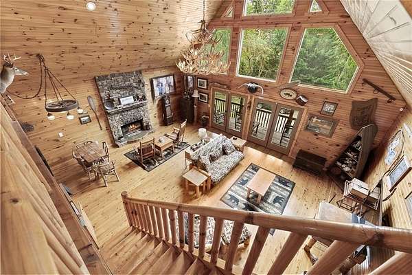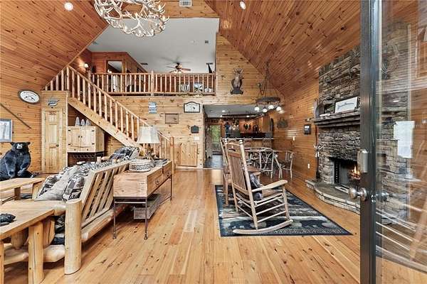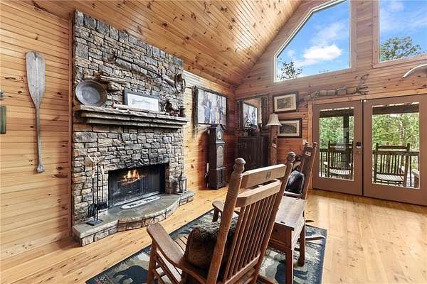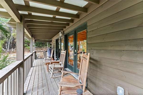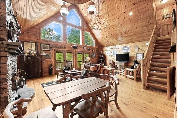 Tucked away on a quiet dead-end road, this charming 3BR/3.5BA mountain cabin sits right on the Chestatee River, offering the perfect blend of privacy, comfort, and convenience. Whether you're looking for a personal retreat or a ready-made investment, this property is sold fully furnished and already set up as a successful short-term rental--all you need to do is step in and enjoy. Inside, you'll find a vaulted great room filled with natural light, featuring Australian Cypress floors, wood ceilings and walls, and not one but two rock fireplaces for that cozy mountain feel. The kitchen has a welcoming country style with stainless steel appliances, granite tops, a breakfast bar, and beautiful flagstone flooring. Outdoor spaces are just as inviting, relax on the covered front porch, host friends on the back deck, relax in hot tub or head down to the riverside pavilion to fish the spring striper run, pan for gold, or simply listen to the water roll by. The cabin also offers a custom stone fire pit with built-in seating, a two-car garage (potentially), and a finished terrace level with partial kitchen that makes an ideal in-law suite or guest space. Location couldn't be better--you're close to GA 400, Historic Dahlonega, Lake Lanier, Dawsonville shopping, and now just minutes from the new Publix and the brand-new NEGA hospital. This is more than just a home--it's a place where memories are made, and an opportunity that's ready from day one. The home situated on one river lot (Lot #1), but additional river lot is included in purchase (Lot#2), total acreage is 2.343 acres. A third river front lot is available, call for details.