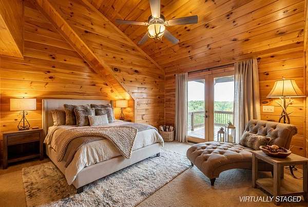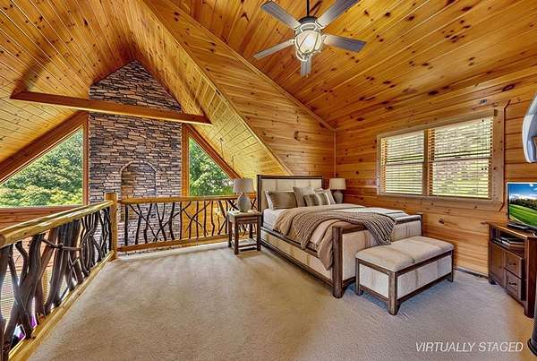 Perched high atop a mountain in the exclusive Raven Ridge community, this stunning lodge-style home offers breathtaking 270-degree panoramic views of the Georgia, North Carolina, and Tennessee mountain ranges. Thoughtfully designed to embrace the surrounding natural beauty, the property boasts a whole house generator system with underground propane tank, remote monitoring security system, recent paint inside and out, brand new roof, multiple porches, a covered patio, a fire pit area, and a wraparound deck—perfect for enjoying golden sunrises, fiery sunsets, or star-filled night skies. Inside, the warm and inviting great room features soaring ceilings, rich hardwood floors, and a dramatic floor-to-ceiling gas stacked-stone fireplace with convenient remote control. The spacious gourmet kitchen shines with stainless steel appliances, extensive counter space, large eat-at bar, and electric cooktop, and flows into a spacious dining area with seating for ten, ideal for hosting gatherings and creating lasting memories. Conveniently located nearby are a half bath and laundry closet. The oversized primary suite is on the main level with an ensuite bath, while upstairs offers two additional bedrooms, one bedroom with its own private deck, a full shared bath, and a versatile loft space perfect for extra sleeping quarters, a home office, or a hangout area. The lower level is designed for relaxation and entertainment, featuring a large recreation room with stain-resistant carpets for high traffic areas and space for a pool table, a walk-up bar, an additional bedroom and full bath, and seamless access to the outdoor deck and oversized hot tub—creating the ultimate private retreat. Located just a short drive from Morganton, downtown Blue Ridge, and Murphy, NC, this exceptional home invites you to unwind in the crisp mountain air, grill on the expansive deck, or simply relax in complete serenity. Schedule your showing today to experience mountain living at its finest!!