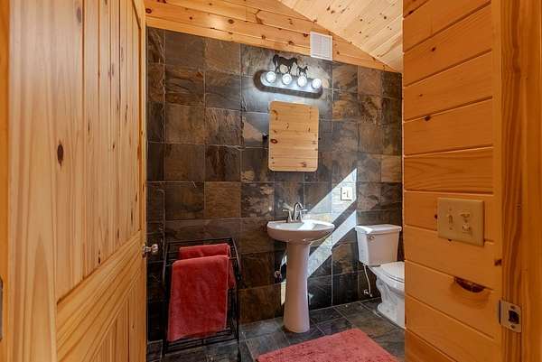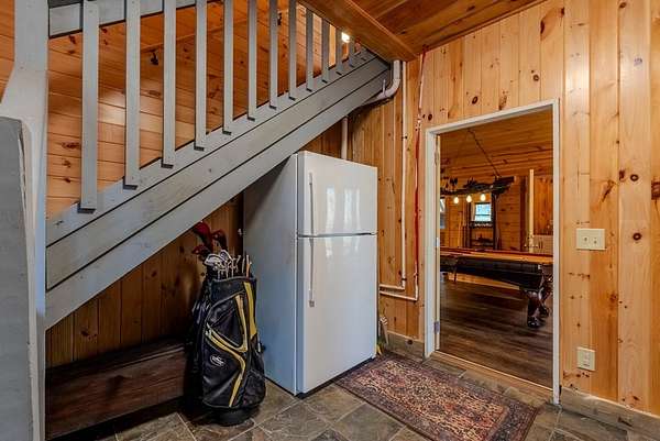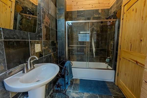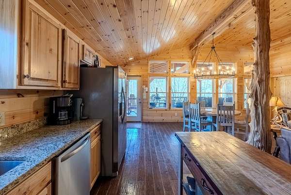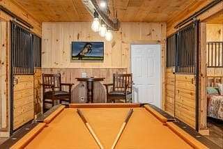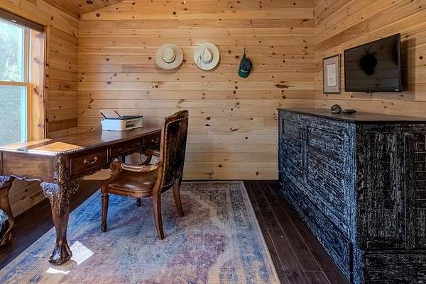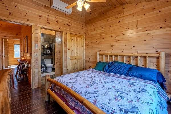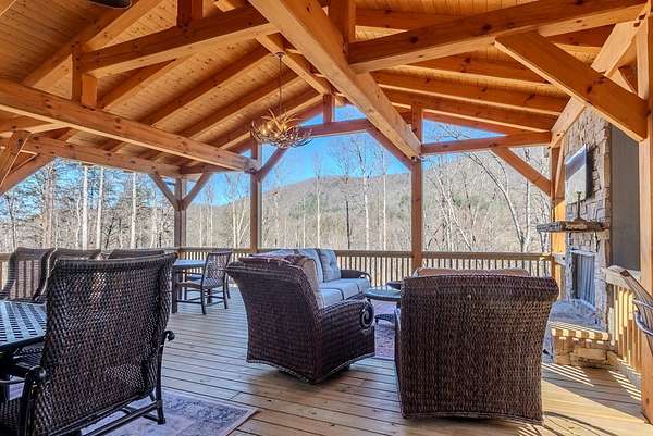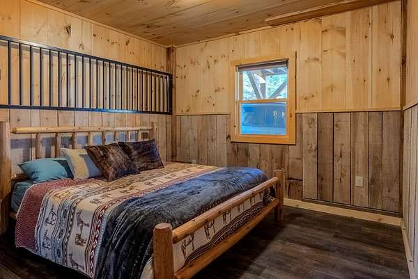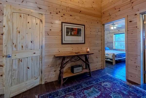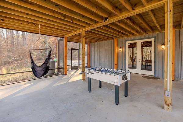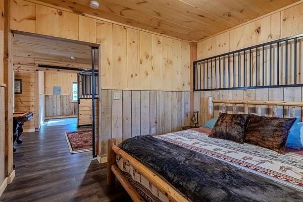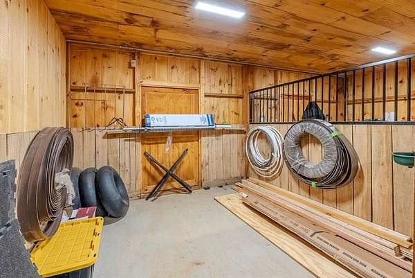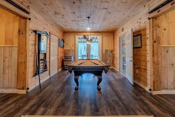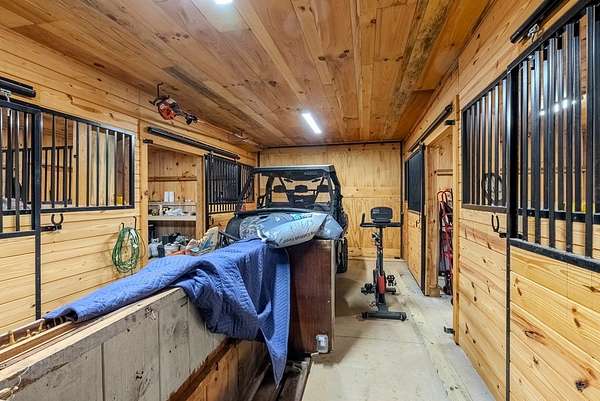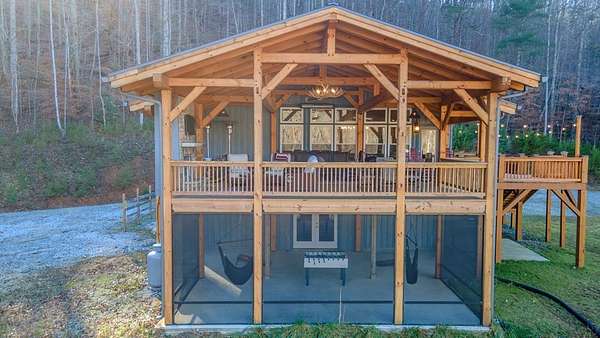 Discover exceptional mountain living in this custom 4-bedroom, 5.5-bath home set on 10.92 unrestricted acres with bold creek frontage and outstanding privacy. Ideal as a horse property or gentleman's farm, the land features a flat, fenced pasture along a big TROUT CREEK—perfect for riding, grazing, or simply enjoying the serene rural setting.A welcoming timber-frame porch with a gas-log fireplace sets the tone. Inside, the main level offers a spacious great room with a vaulted ceiling, rich tongue-and-groove paneling, and hardwood floors throughout. All four bedrooms are ensuite, and a convenient half bath serves the main living area.The lower level extends the living space with a large rec room, two additional sleeping rooms, and a full bath. This level also includes three horse stalls, currently used as storage and a workshop, providing flexible utility for animals or hobbies.Enjoy sweeping views across the pasture toward the valley and mountains, all just a short drive to Highlands and Franklin, NC. A rare combination of craftsmanship, acreage, and waterfront beauty—ready to become your mountain retreat.