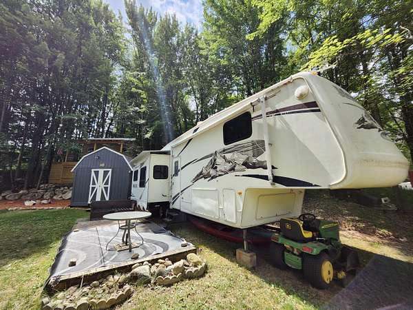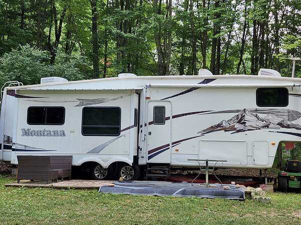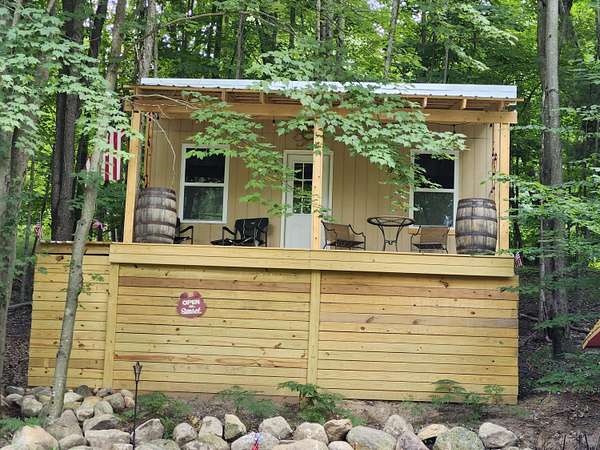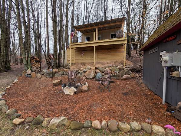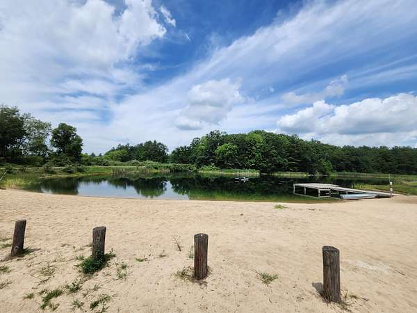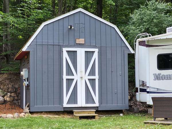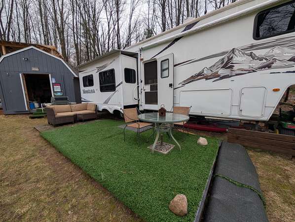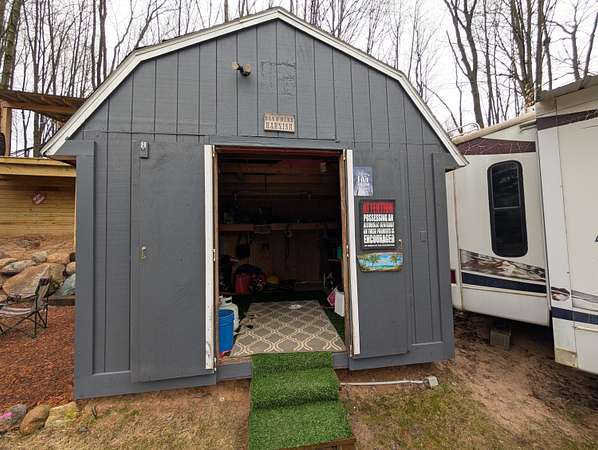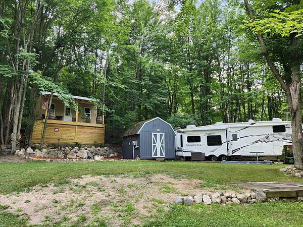 Wilderness Retreat Awaits at Whiskey Creek. Whiskey Creek is surrounded by Manistee National Forest. Own a piece of paradise directly next to thousands of acres of public land for endless exploration. Lot 293 is located directly across from community beach and recreational trails. Full Price Includes the Cabin, Storage Shed and 5th wheel Trailer. All ready for your weekend adventures. Enjoy all the amenities for just $324 per year per lot. Unwind in Nature: Pristine surroundings with two large fishing ponds, a beautiful beach for swimming, and seasonal bathhouses. Relax in the clubhouse, explore over 130 acres of common area, and enjoy snow-cleared roads all winter. Recreational Paradise: Minutes from the Pere Marquette River, lakes, trails, public hunting land, and opportunities