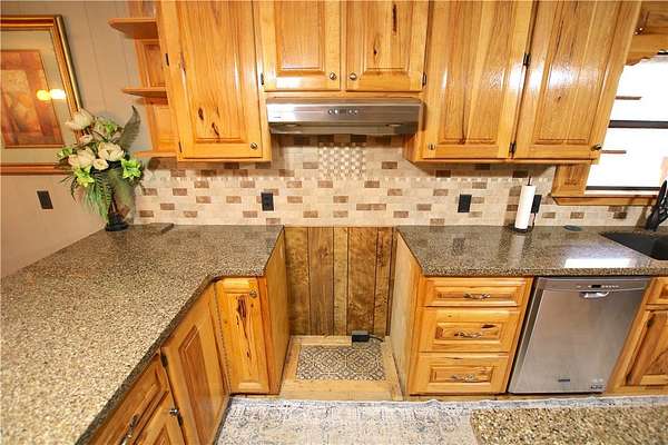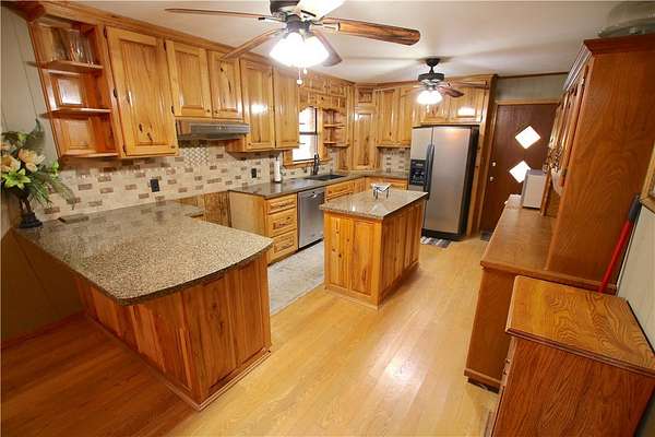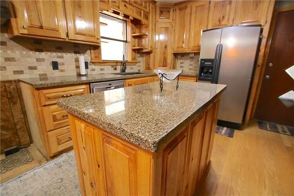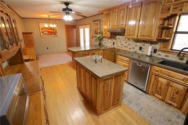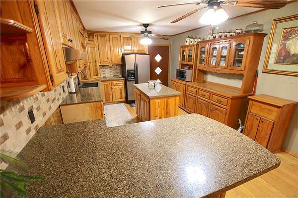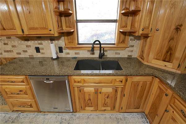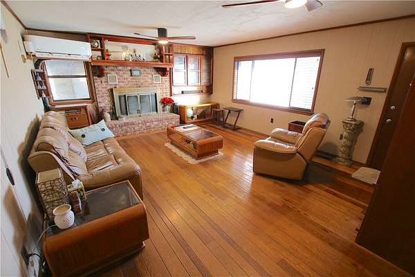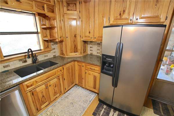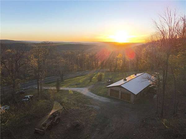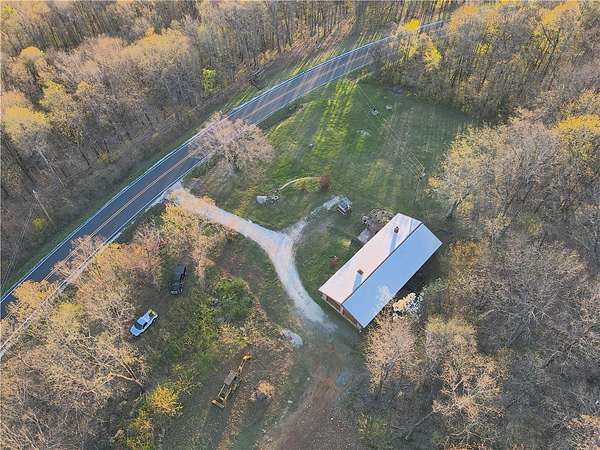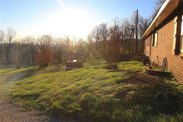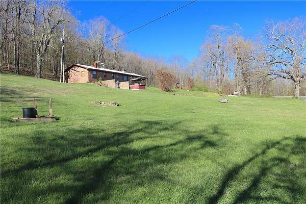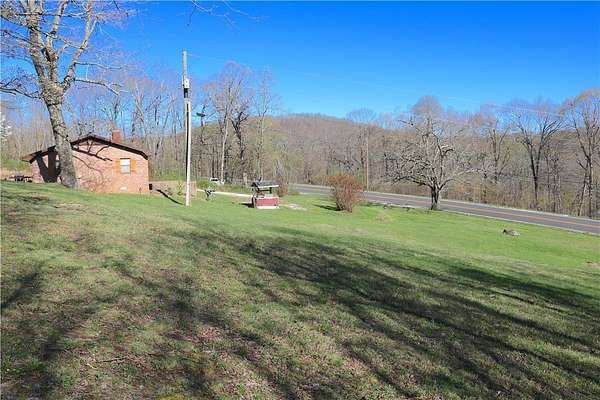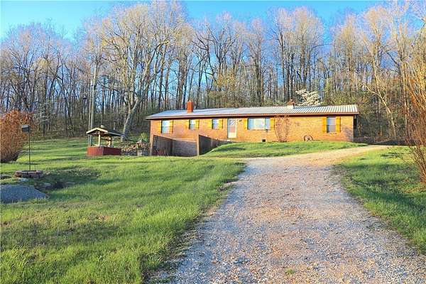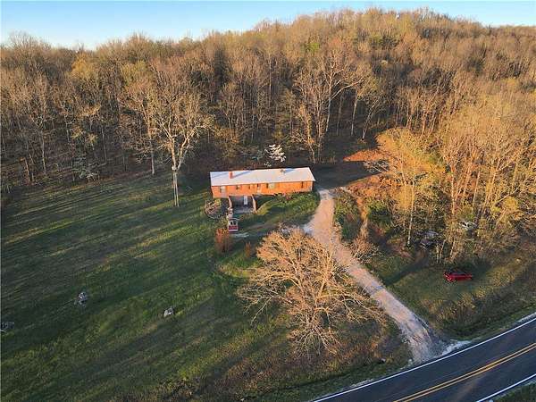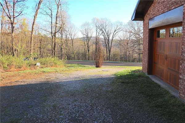 This charming 3 bed 1 bath brick home is nestled on approximately 8 acres with pavement frontage bordering the National Forest providing the perfect backdrop for nature lovers. A cleared area is already designated for a shop building that would add a great space for hobbies and storage. The views from the home are nothing short of breathtaking, enhancing the overall appeal of the property. Essential utilities are already on site including electric, rural water, septic and fiber internet. There are additional build sites on the property that increase in elevation adding even greater views. The home designed for comfort and sophistication offers 2 large bedrooms and 1 smaller bedroom. The kitchen features granite counter tops, an island and beautiful handcrafted cabinetry. The main living space has windows that look out over miles of the Ozark mountains where the abundant wildlife in the area can be observed. With Forest boundary, pavement frontage and proximity to recreation this property is a box checker!