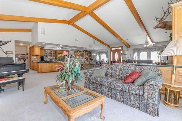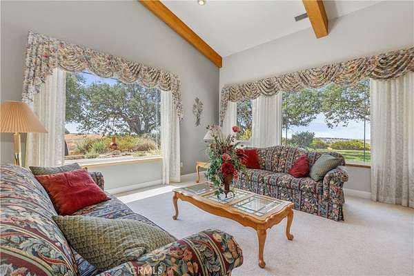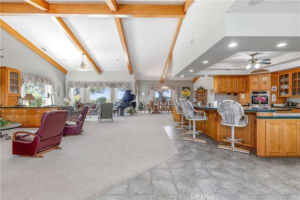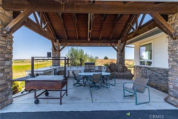 Perched on a scenic knoll with sweeping 360-degree views, this remarkable 80 +/- acre estate offers exceptional privacy, space and timeless craftsmanship in the heart of the Central Coast. The custom-built main residence, completed in 1999, spans approximately 4,649 +/- sf and showcases quality wood-frame construction, stucco siding and a concrete tile roof. Inside, the 4 BD and 3.5 BA are thoughtfully arranged for both comfort and functionality. The dramatic great room is a true centerpiece, featuring vaulted ceilings with exposed oak beams, a floor-to-ceiling gas fireplace, and a wall of windows framing panoramic vistas. Designed for both everyday living and grand entertaining, the home also offers a formal dining area, a wet bar, a casual dining nook with built-in oak hutch and desk and a well-appointed office with custom cabinetry.