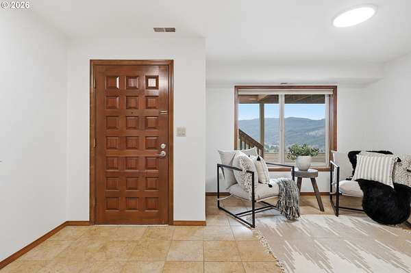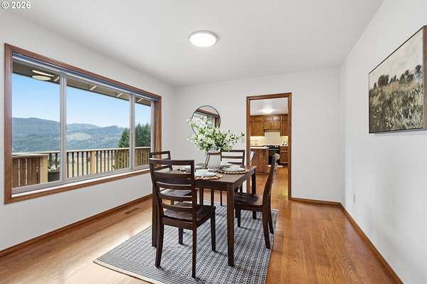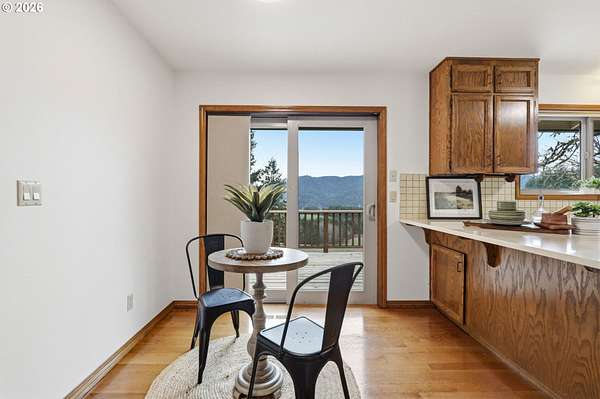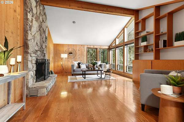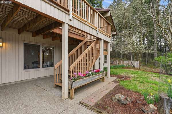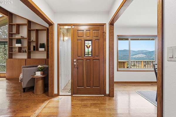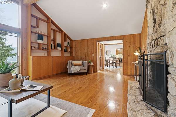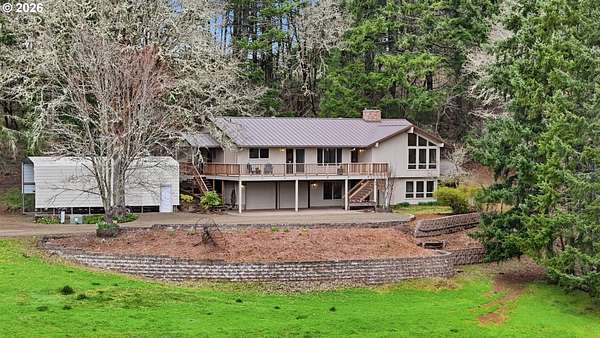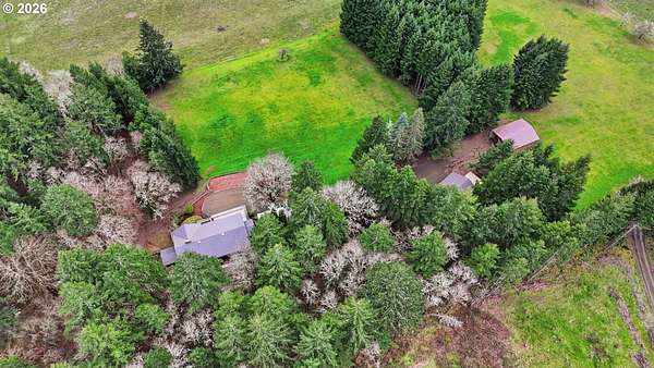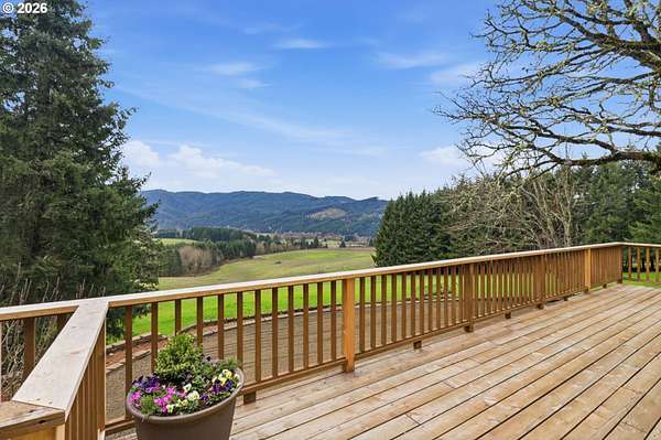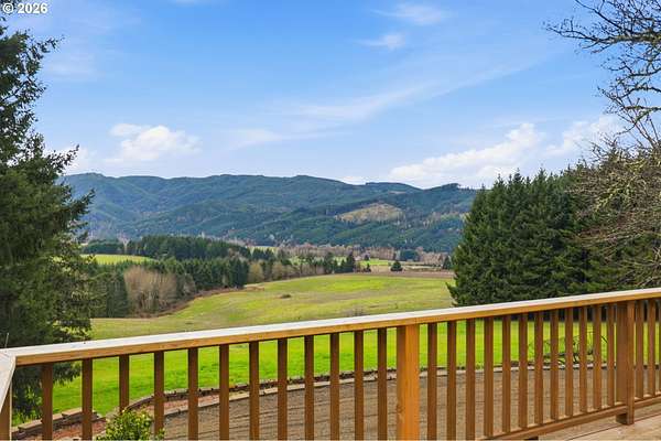 A timeless Forest Grove retreat set on 10 private acres, this custom two-story residence captures the essence of refined Northwest living. Thoughtfully designed to frame sweeping views, the home blends natural materials, warm craftsmanship, and an effortless indoor-outdoor connection. The main floor family room keeps everyone happily spread out, and the main floor bedroom and full bath are perfect for guests, in laws, or anyone who believes stairs are optional before noon. Upstairs, original hardwood floors lead into a vaulted living room with a floor to ceiling fireplace and custom-built ins-the kind of space that begs you to light a fire and curl up with a good book. The kitchen includes an adorable eat-in space, large pantry and views for days. Step onto the wrap around deck and the world opens up to views so pretty you'll start scheduling excuses to "check the weather." With the primary suite and two additional bedrooms, the layout offers room to gather, room to retreat, and room to grow. Outside, the property opens into true country living: a large shop for projects and storage, RV parking for adventure-ready weekends, and acres of privacy to roam, garden, or simply breathe. Quiet, peaceful, and wrapped in sky-yet just 10 minutes to Forest Grove for everyday convenience. A rare blend of space, soul, and practicality, ready for its next chapter!