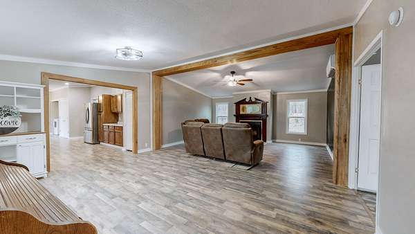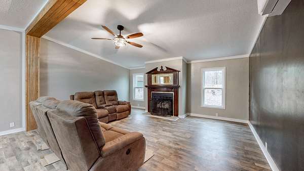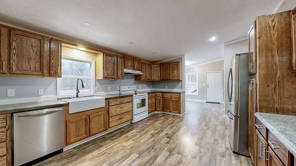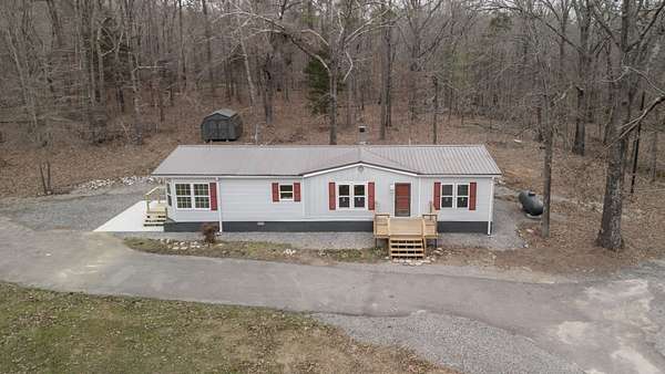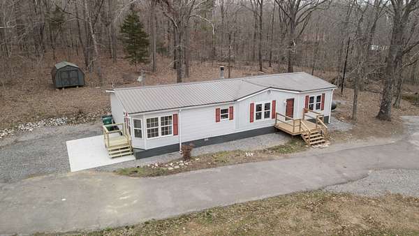 Tucked away in a peaceful, wooded setting just minutes from Kentucky Lake, this spacious 3-bedroom, 2-bath home offers the perfect blend of comfort, privacy, and outdoor living. You'll enjoy the benefits of 4.69 acres to explore and give room for future growth. With 1,659 sq ft of living space, the home features an updated interior designed for easy, modern living. A metal roof adds durability while new windows and heating and cooling units offer peace of mind. Included kitchen appliances plus a washer/dryer and even a freezer make this a move-in ready home. Step outside and enjoy the quiet surroundings, ideal for nature lovers, lake enthusiasts, or anyone seeking a serene retreat. The property includes an impressive 858 sq ft shed plus 2 additional outbuildings—perfect for storage, a workshop, or lake gear. Whether you’re looking for a full-time residence, weekend getaway, or investment near the lake, this property delivers space, functionality, and location in one inviting package.