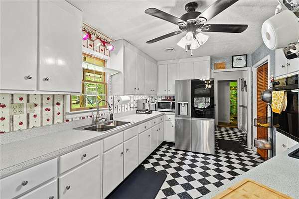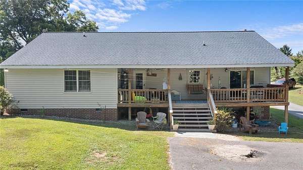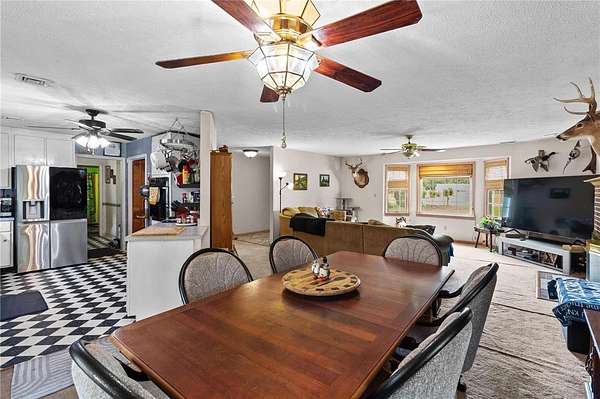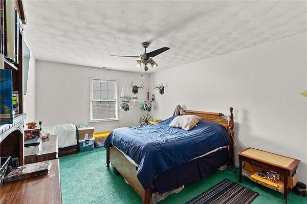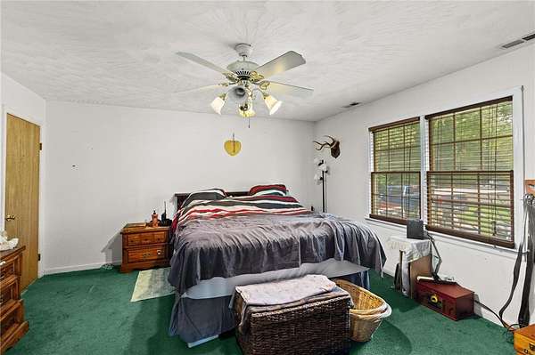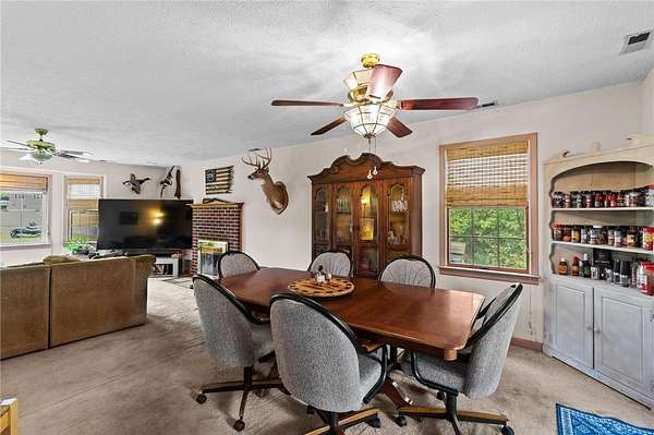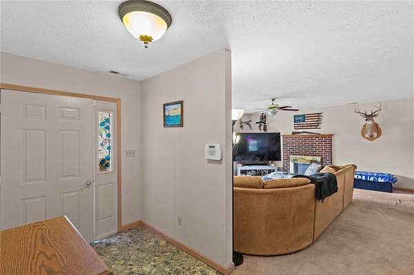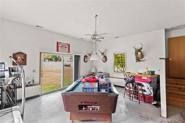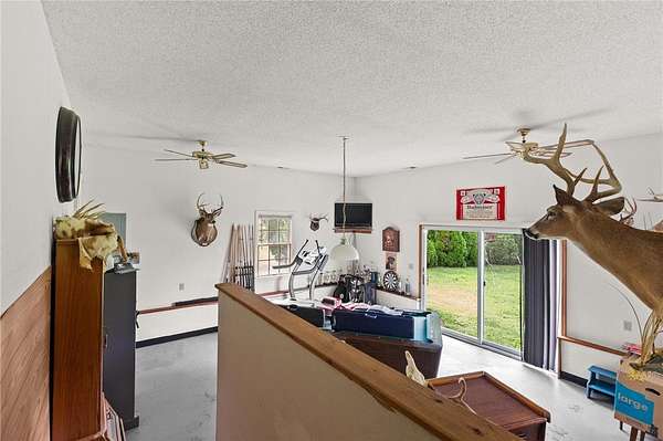 Spacious 3 Bedroom, 2 Bath Rancher on 1.57 Acres offering 2,113 Sq. ft of comfortable living! The home features a welcoming kitchen with a small bar top---perfect for casual dining, plus a converted garage now serving as a large recreation room. Enjoy the cozy living room with propane gas logs, open to a attached dining area. (Please Note: Propane Tanks are rented and will not Convey.) This property includes a paved driveway leading up to a 1440 sq ft detached garage with a 10ft lean-to--ideal for storage, hobbies,or workshop use. Additional highlights include a dedicated laundry/mudroom, also space for dog pens beside garage. This Property is being sold as is where is.