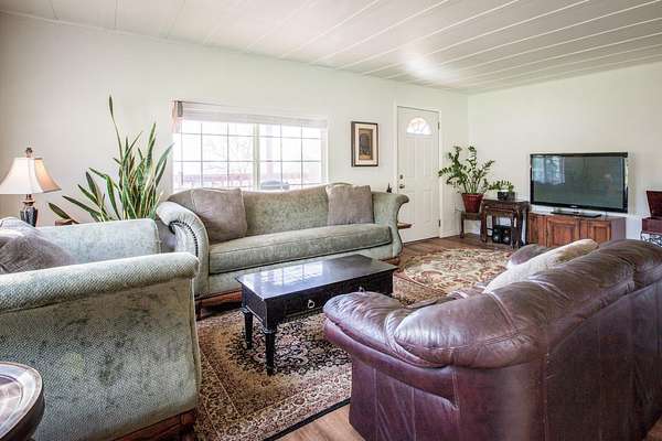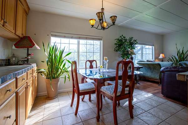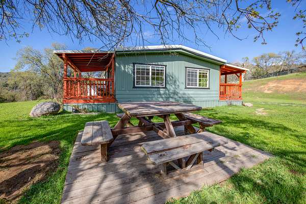 Experience the perfect harmony of modern comfort and serene mountain living at this beautifully updated 2-bedroom, 2-bathroom retreat situated on rolling, lush 4.6+- acres of land. Located at a desirable elevation where you can enjoy refreshingly cooler summer nights and just enough of a light winter snow, this home has been meticulously reimagined for both style and efficiency. The exterior is built for peace of mind with a newer metal roof, durable aluminum siding, metal skirting, and dual-pane windows that keep the interior cozy year-round. Step inside to find a light-filled floor plan boasting a chef-inspired kitchen with upgraded cabinetry, tile countertops, and quality flooring that flows seamlessly into the dining area. Both bathrooms have been thoughtfully renovated with custom finishes, complemented by upgraded doors and contemporary laminate flooring throughout the main living space & bedrooms. Beyond the home, this virtual compound is fully fenced with a secure double-gated entry and features a private walking trail that winds through a picturesque landscape of mature oaks, native manzanita, and pine trees. The property offers incredible utility with a good well, a finished storage building equipped with power for your workshop or hobbies, and an easy-to-maintain granite lined driveway leading to expansive level areas perfect for parking or future projects. Whether you are relaxing on the covered front porch or taking in stunning sunsets from the rear covered deck, this turnkey nature lovers retreat offers a rare combination of refined interior style and rugged natural beauty. This home is believed to be on a permanent foundation system with a recorded 433A, offering excellent potential for FHA, VA, or conventional financing. Bath counter may differ from tax records, Buyer to verify. Storage Containers are excluded from the sale.