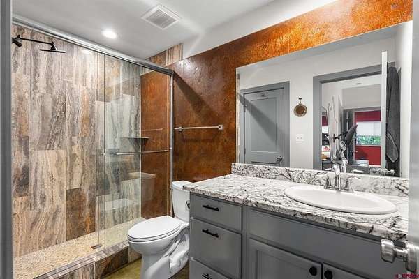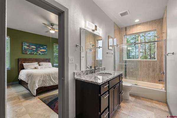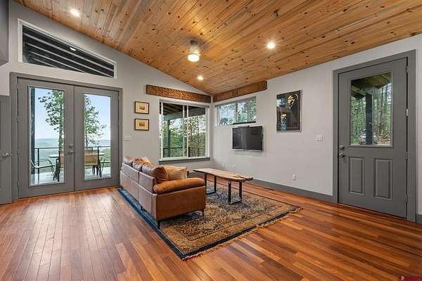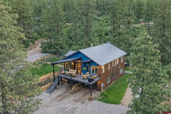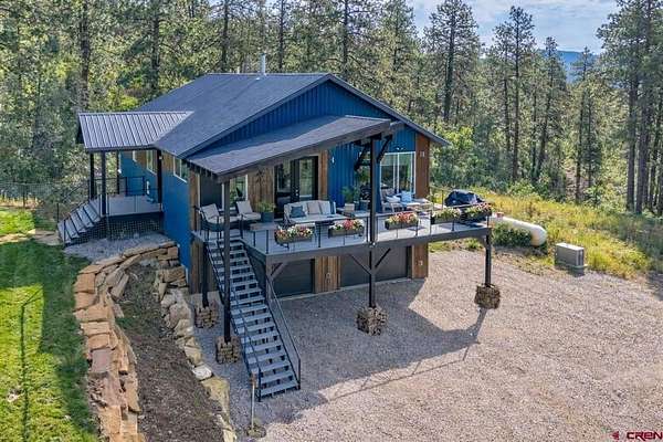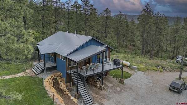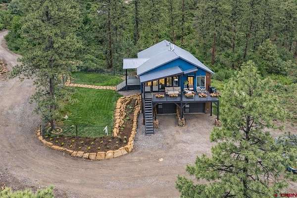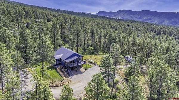 Gabi Bergstrom, RE/MAX Pinnacle, C: 970-946-7522, gabibergstrom@gmail.com, http://www.realpropertydurango.com/: 35 Acres Just 10 Minutes from Downtown Durango - A Combination That Simply Does Not Exist Anymore. Situated on a pristine 35-acre parcel only minutes from Downtown Durango, this 2020 Grandt Custom Home offers exceptional privacy, sweeping ridgeline views, and remarkable flexibility in an unmatched setting. Nestled in the pines within a gated community, this mountain-modern retreat captures expansive views of surrounding mountain ridges, dramatic summer storms, and some of the most vibrant sunsets Durango has to offer. Short-term rentals are allowed, and the land permits two additional residences, creating an opportunity for a private estate, family compound, or long-term investment. The thoughtfully designed 2,234 square-foot residence offers three bedrooms and three bathrooms, including a separate lower-level living area. The oversized 846-square-foot acid-stained two-car garage connects to a private suite complete with kitchenette, bedroom, full bath, walk-in closet, laundry, and direct outdoor access. More than 600 square feet of covered outdoor living spans three decks, including a spacious upper deck positioned to maximize mountain views and year-round indoor-outdoor living. Whether enjoying morning coffee, evening gatherings, or watching the sky ignite in color at sunset, the setting is both peaceful and unforgettable. Just off the main living area, a fully fenced side yard provides secure and convenient access for pets or children, a rare and practical feature on larger acreage properties. Beyond the yard, the 35-acre parcel offers usable terrain mixed with mature pine forest and a private trail system winding through the trees and along a seasonal ravine. Evening walks, trail runs, and quiet moments in nature are all available without ever leaving your property. Inside, vaulted tongue-and-groove ceilings and warm teak hardwood floors anchor the living room, centered around a wood-burning stove and opening to a covered patio shared with the primary suite. The kitchen blends style and function with granite countertops, a stainless farmhouse sink, glass tile backsplash, limestone tile floors, stainless steel appliances, a pantry, generous prep space, and a built-in office nook. The adjacent dining area and breakfast bar make entertaining effortless. The main-level primary suite features private deck access and a spa-inspired bath with dual glass vessel sinks, granite counters, oversized dual-head shower, jetted soaking tub, and picture windows framing the landscape. A second en-suite bedroom offers privacy and a full bath. The laundry room includes cabinetry, a utility sink, a Samsung stackable washer and dryer, and access to the deck. The lower level is finished with warm stained concrete floors and lives like a separate residence, offering a spacious living room with natural light and pine views, a well-appointed kitchenette with wood cabinets and stainless appliances, a bedroom with bold accent wall, a beautifully finished full bath with custom tile shower and granite vanity, a dedicated laundry closet, and access to a third covered outdoor living area. Additional highlights include a 30+ GPM well permitted for three residences, a five-bedroom septic system, reverse osmosis and whole-house water treatment, a whole-house backup generator, two-zone forced-air heating, an RV site with a 100-amp electrical pedestal, a fully fenced grassy yard, a seasonal ravine, and a minimal HOA. A newly built mountain-modern retreat on 35 acres, this close to town, is truly irreplaceable at this price.