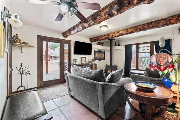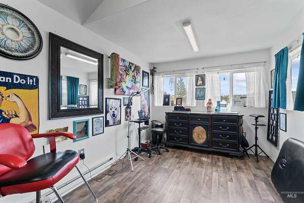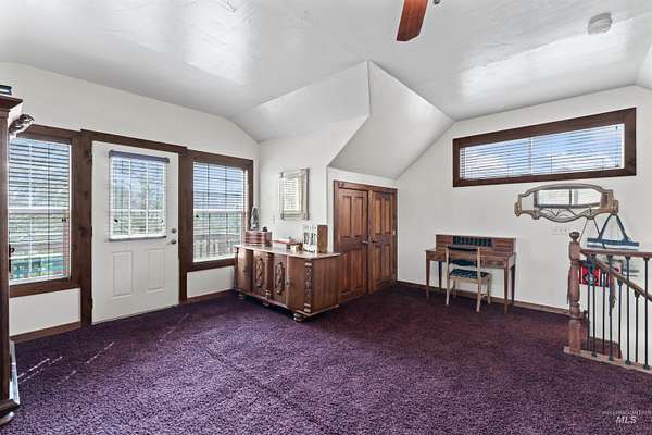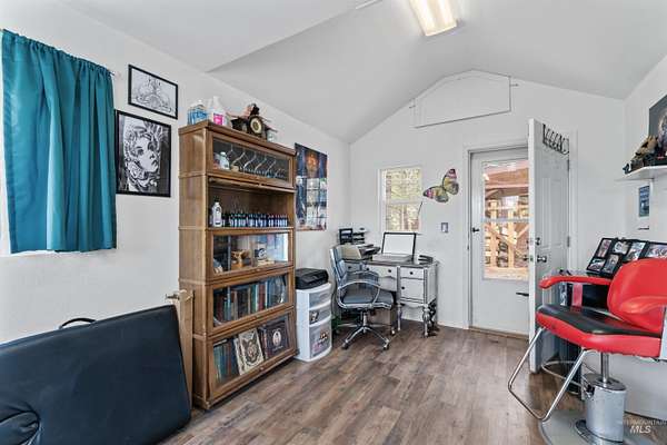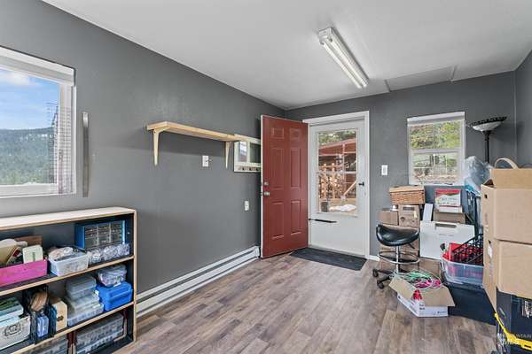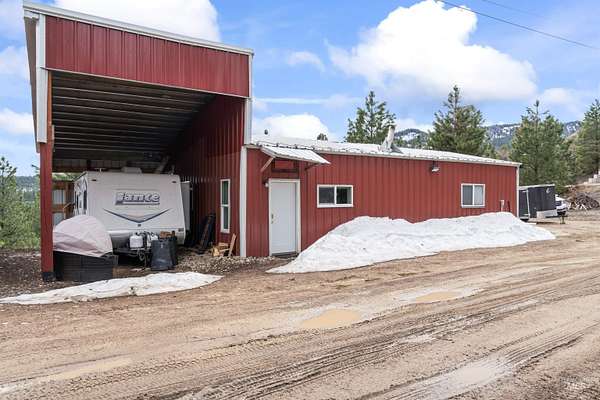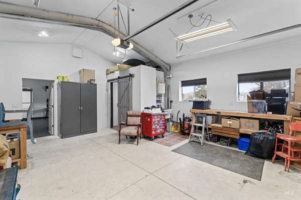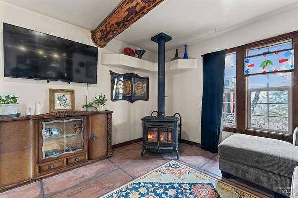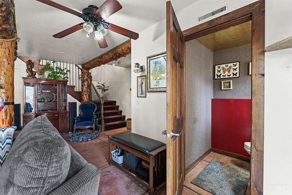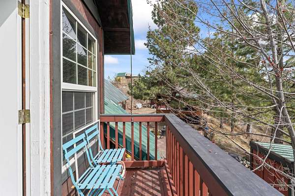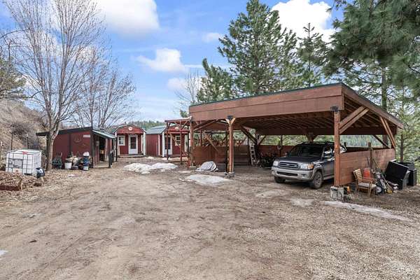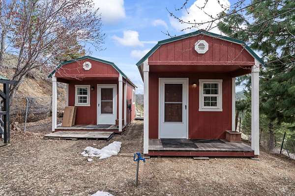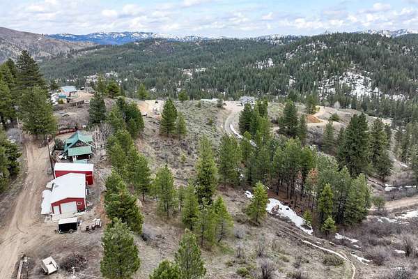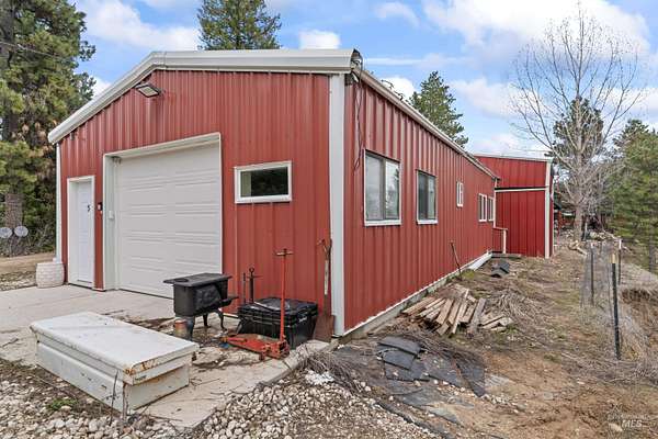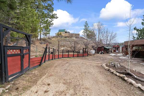 Tucked away on 2.25 serene acres just 45 minutes from Boise, this off-grid retreat offers rare privacy without sacrificing comfort. The main cabin welcomes you with rustic log beams, a cozy wood stove, propane heat, and an upstairs bedroom featuring an attached bath and charming Romeo & Juliet balcony. The kitchen is equipped with 2021 Samsung smart appliances, a generous pantry, and access to a pump house with added storage and freezer space. A dependable artesian well and a 2024 Generac generator with a 10-year warranty ensure consistent, reliable power. A newly added 12x16 covered porch in 2024 provides additional outdoor living space and future expansion potential. The property feels like your own private park, complete with a tranquil pond, waterfall, sandy beach, and lush gardens blooming with wisteria, blackberries, and seasonal flowers. Two finished 10x20 dry cabins offer flexible space for guests, hobbies, or a home office. The 40x40 shop includes a finished 20x20 studio with one bedroom, a bathroom, and a wood stove. Full RV hookups, multiple sheds, dual septic systems, and completed fire mitigation make this property fully equipped for mountain living.
