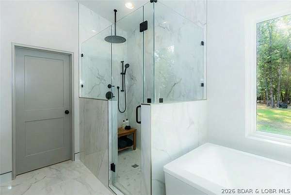 Discover a one-of-a-kind residence where modern architecture harmonizes and craftsmanship. This stunning home sits on 5 acres offering 4 beds, 6 baths along with a 2,300 sq.ft. garage, complete with heated floors and A/C. Inside and experience an open-concept living space with 24ft vaulted ceilings in the great room. Oversized Low-E Andersen windows flood the home with natural light while offering serene woodland views. Crafted with only the highest quality materials, the home features elegant wood floors, soundproofed bedrooms and baths, 8ft solid core interior doors, and seamless flush style trim exuding craftsmanship. A chef's inspired kitchen complete with handcrafted cabinetry, sleek black stainless steel appliances, and a hidden walk-in pantry for ample storage. Retreat to the master suite where you'll find a stand alone soaking tub, a luxurious walk-in shower and spacious custom walk-in closet. This home is design with quality and comfort in mind. The perfect sanctuary for modern living and privacy. Additional features include hardwood floors throughout the house, laundry room upstairs and downstairs and proximity to schools, shopping, parks, and major highways.