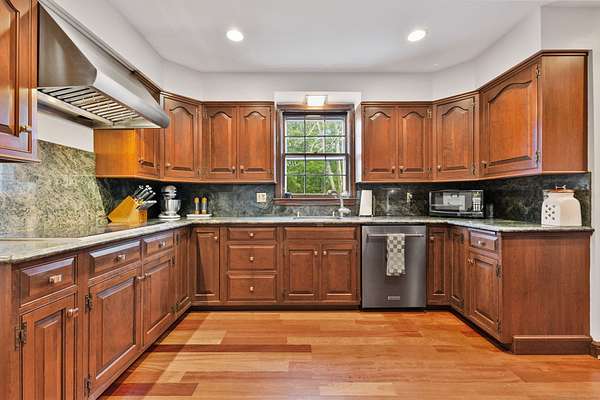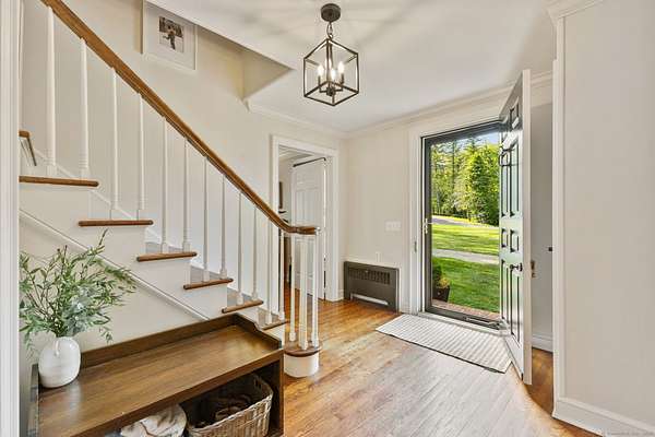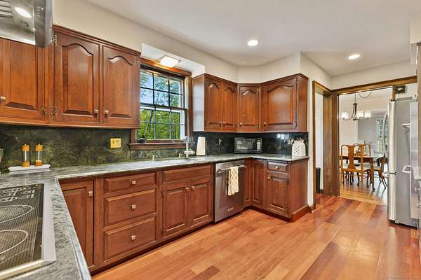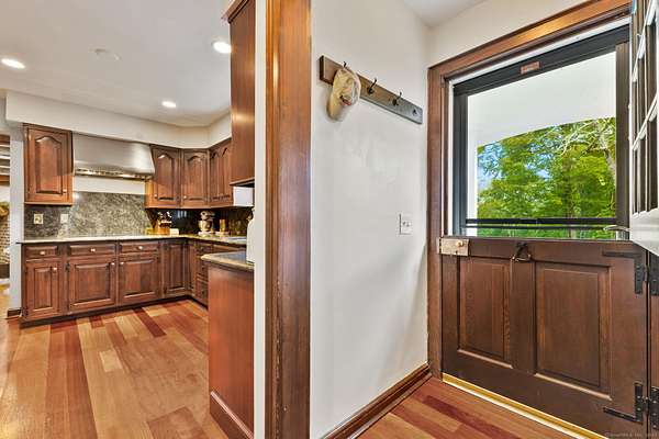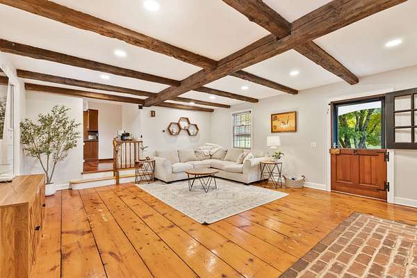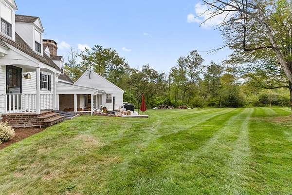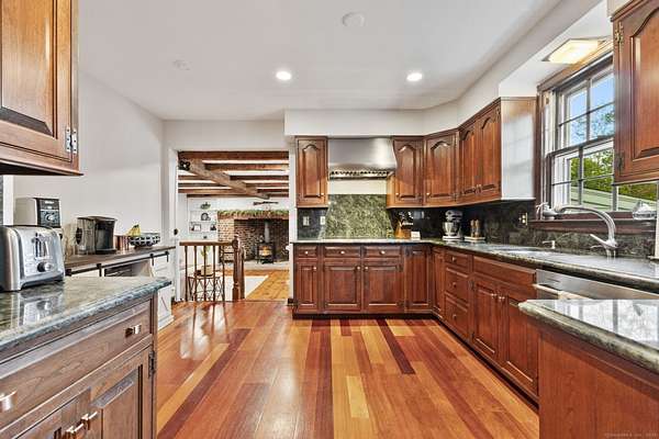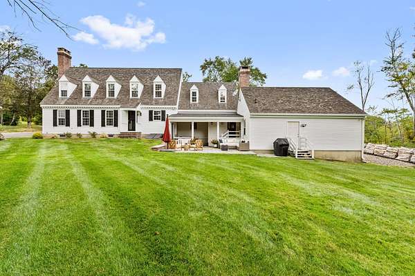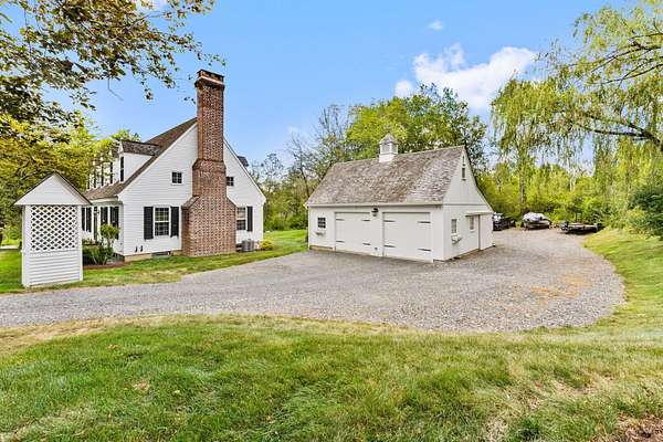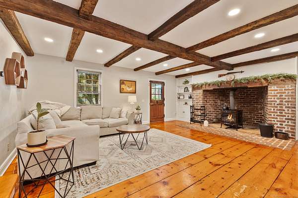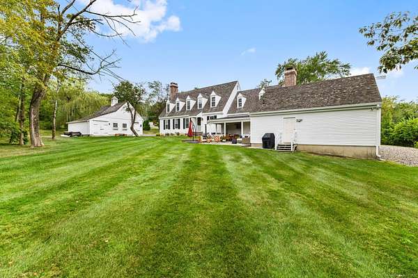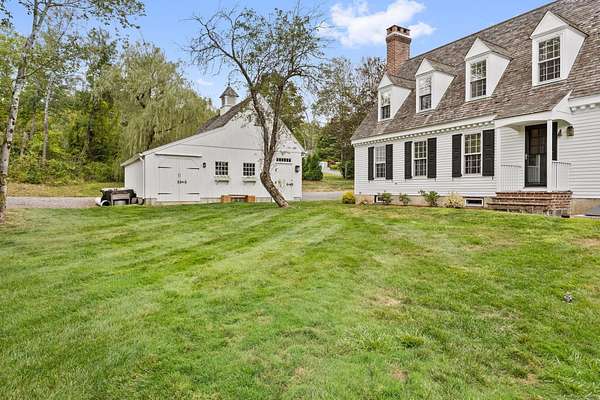 Welcome to this striking Cape/Colonial nestled on a picture-perfect, dead-level parcel in one of Sherman's most desirable locations. With timeless curb appeal featuring classic wood clapboard siding and a charming cedar shingle roof, this home effortlessly blends character, comfort, and functionality. Step inside to discover a warm and inviting interior. The spacious family room is a true showstopper, boasting antique wood beams and a stunning floor-to-ceiling brick fireplace with a woodstove insert-perfect for cozy gatherings. The kitchen offers ample cabinetry and easy flow into the formal dining room, ideal for hosting family and friends. The living room features a second beautiful fireplace, adding to the home's ambiance and historic charm. A main-level bedroom with private access to a full bath provides flexibility for guests or single-level living. The convenient laundry/mudroom with built-ins and a powder room adds everyday ease. A two-car attached garage completes the main home. Upstairs, you'll find a spacious primary bedroom, two additional bedrooms, and a full bath. The layout offers potential to reconfigure it for a luxurious primary suite. Outside, the dream continues with an incredible detached post-and-beam 2-car garage and workshop-ideal for business owners, contractors, car collectors, or hobbyists. The property is truly exceptional: level, usable, and private-perfect for outdoor living, gardening, or future expansion.