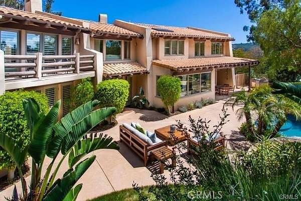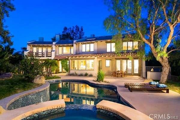 Located in the prestigious guard gated community of Bell Canyon, this custom Spanish Hacienda inspired estate is loaded with style and charm. The stunning architecture, quality construction, rare parking for at least 10+ cars, and very private natural setting all combine to create the perfect entertainer's retreat. The open and flowing floor plan features an impressive entry with sweeping staircase and two story vaulted ceilings. The inviting living room features vaulted wood beamed ceilings, a stunning centerpiece fireplace and rich hardwood flooring. The grand dining room is scaled perfect for huge gatherings or an intimate candlelit dinner with views onto the gardens. The comfortable Family room is the perfect place to gather complete with hardwood floors and custom built ins. Take comfort in the private study or enjoy a game of pool in the billiards room. The granite center island kitchen is every gourmet chefs envy with a spacious breakfast nook with views onto the beautiful manicured rear grounds. The romantic master bedroom suite offers vaulted tongue and groove ceilings, a huge sitting area and custom fireplace. The 2 acre grounds offer spacious patios, lush landscape, a freeform pool and spa all with plenty of space for horses, play fields or what ever you wish.
