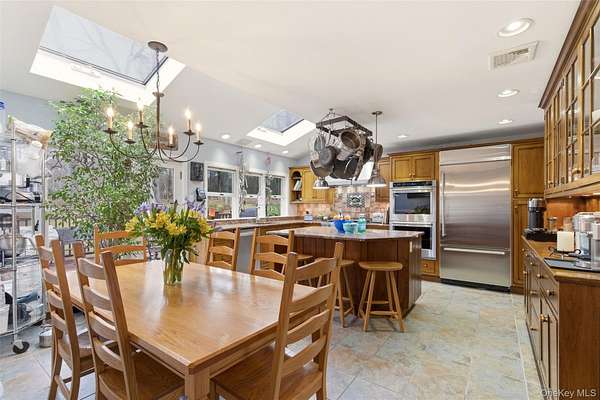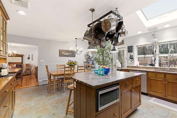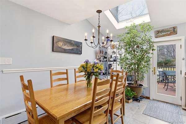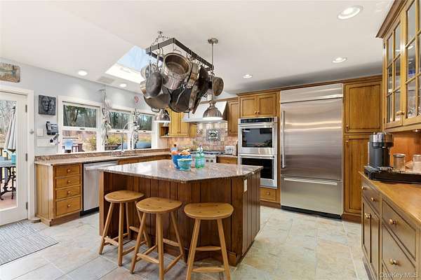 Nestled on 2 serene acres in the charming hamlet of Eatons Neck, this beautiful home offers the perfect blend of comfort, privacy, and modern living. Featuring 4 bedrooms and 2 newer bathrooms with radiant heated floors, the home is thoughtfully designed for both everyday living and entertaining. The chef's kitchen is a standout feature, complete with stainless steel appliances, a 6-burner gas stove, double oven, center island, solid wood cabinetry, and two skylights that fill the space with natural light. The kitchen opens to a private Trex deck overlooking the peaceful two-acre property, perfect for outdoor dining or relaxing in nature. The living room features a fireplace, recessed lighting, and custom built-in lighted cabinetry, creating a warm and inviting space. A sunken family room with slate flooring, ceiling fan, and wood-burning stove provides additional comfort and cozy gathering space. The study offers a quiet retreat, highlighted by a beautiful saltwater fish tank with a variety of fish and coral, creating a calming and unique focal point. Additional highlights include Andersen windows throughout, central vacuum, a Honeywell generator, and two central air conditioning units-one just 1 year old and the other 4 years old. In-ground sprinklers. Residents of this waterfront community enjoy membership in Eaton Harbors Corporation, which offers access to a private beach, mooring rights, playground, kayak storage, and picnic area. For boating enthusiasts, Sand City is less than 2 miles from the private association, making waterfront adventures easily accessible. Conveniently located near Northport Village, where you can enjoy charming shops, restaurants, parks, and the historic John W. Engeman Theater. This exceptional property offers peaceful surroundings, spacious grounds, and access to a coveted coastal lifestyle-an ideal place to call home.