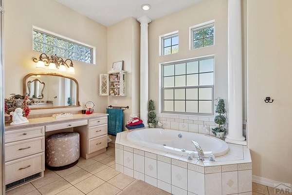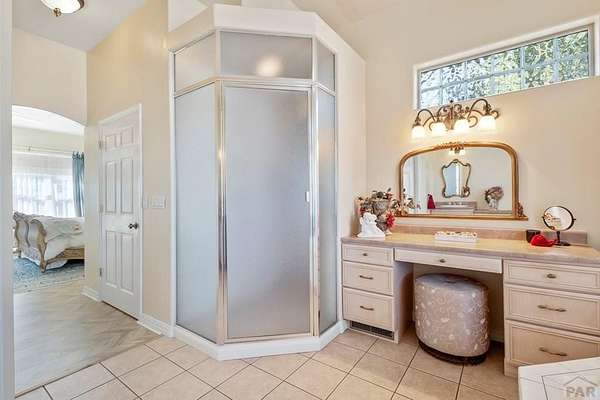 - Ceiling Fan(s), Hard Surface Counter Top, Soaking Tub, Vaulted Ceiling(s), Walk-In Closet(s), Walk-In Shower