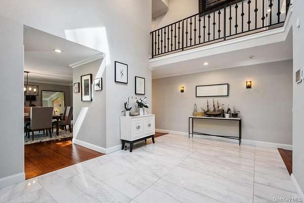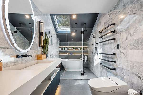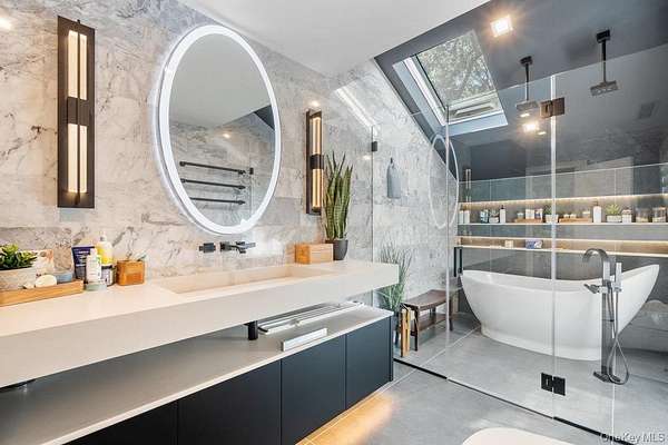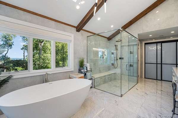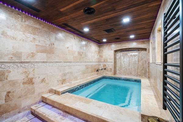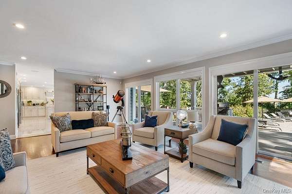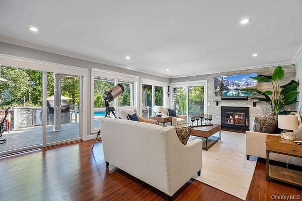 Once you step through the front door, the world recedes behind you and there is nothing you need that won't be found in this stunning state-of-the-art home. This one-of-a-kind contemporary colonial is a true blend of luxury and technology. This amazing home offers approximately 5,800 square feet of living space, plus an additional 2,000 square feet of lower-level space with sliding glass doors to the rear yard, providing exceptional flexibility for entertaining and recreation. With five-bedrooms and six-baths, this unique residence features a gourmet kitchen, separate dining and living rooms, each with their own fireplace. There are two primary suites, one with cathedral ceilings, fireplace and its own balcony overlooking the property. There is a gym, movie theatre, an indoor and outdoor pool plus an indoor sauna and outdoor hot tub oasis. There is a user-friendly fully integrated high-end control 4 smart home system that controls television, thermostats, security system, lights, and every window shade throughout the home. Audio with built-in wall speakers in every space, including bedrooms and bathrooms is complemented by a brand-new outdoor speaker system spanning the entire backyard, pool, patio, and hot tub areas as well as 9 zones of heat and air conditioning. All interior skylights are motorized as well as 48 new windows. The home theater has been upgraded with a new 4K projector, enhanced sound system, and an immersive 115-inch screen. The newly installed sauna has a custom glass enclosure and floor to ceiling travertine stone throughout the spa and hallway. Outdoor living is equally impressive with heated saltwater pool, hot tub, gas-powered fire pit, and a fully equipped outdoor kitchen with a new BBQ, sink, and refrigerator. The property is also EV-ready, offering two electric vehicle chargers on independent circuit breakers, allowing for two vehicles to charge simultaneously. There are 48 solar panels that power the entire property. This home is that rare combination of luxury finishes, advanced technology and located within the Fiddler Green homeowner's association with private beach, deeded harbor with mooring and located in a prime location in the sound. It offers an elegant efficiency and infrastructure designed for comfort, entertainment and is a self-contained refuge in every sense. Don't miss out on this rare opportunity to see this spectacular home on Long Islands beautiful Gold Coast. Cold Spring Harbor School District.