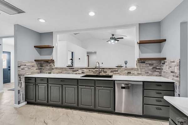 - Dishwasher, Disposal, Gas Range Oven, Microwave Built-In, Refrigerator