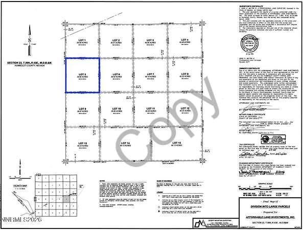 39.68 acres in the vast wilderness of northern Nevada. Directly borders 640 acres of public recreational land maintained by the BLM with access to thousands more. This very remote property naturally offers a way to put the phone down and unplug for a while while enjoying all that nature has to offer. This would also be an excellent property for a hunting or recreational base camp. Lots of outdoor activities nearby, including the local favorite Winnemucca Sand Dunes. The property is zoned M3, which offers many flexible uses. Well permits in the area show water depths ranging from 70120 feet below ground. Other uses that would be ideal for this parcel are grazing land for horses and cattle, other agricultural uses, an RV or camping spot, ATV riding, a shooting range, a bugout spot, or simply to hold as a long-term asset or inflation hedge. County: Humboldt, NV Parcel Number: 07063405 Legal Description: Lot 5 Of DLP. Document 2006 2787 Utilities: No electricity. Any building would be off grid. Would be well for water and septic for waste. Zoning: M3 (Open Land Use District) HOA: None Nearest Town: 1 hr 15 min to Winnemucca, NV: Population 7,500. Winnemucca has all services needed, including restaurants, service stations, a hospital, and a Walmart Supercenter. Taxes: 58.55 per yr Terrain: Level Elevation: 4,530 ft - 4,540 ft