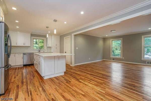 Step into this beautifully designed 4-bed, 2.5 bath home in the heart of Warren-where modern style meets everyday comfort. The open-concept main level is the star of the show, featuring white shaker cabinetry, sleek quartz countertops a massive 87" center island, and a full suite of Samsung stainless-steel appliances. The hardwood floors throughout the home create an elegant, seamless flow, complemented by fresh paint that makes every room feel bright and welcoming. Upstairs, the primary suite delivers true retreat vibes with a spacious walk-in closet and spa-inspired bath offering a 72' double vanity, a frameless 72' glass shower, and a luxurious Kohler Hydro Rail system-perfect for unwinding at the end of the day. The finished basement adds valuable bonus space-ideal for a recreation room, gym, home office, or play area-whatever fits your lifestyle. This move- in ready home checks all the boxes: Modern upgrades, thoughtful finishes, and prime location in one of Warren's most desirable neighborhoods. Close to major highways, restaurants, shopping and much more!