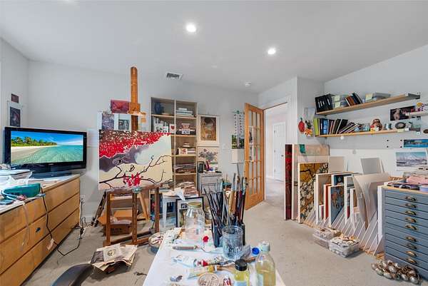 - Beamed Ceilings, Built-In Features, Cathedral Ceiling(s), Ceiling Fan(s), Chandelier, Chefs Kitchen, Crown Molding, Eat-In Kitchen, Entrance Foyer, Fireplace, Formal Dining, High Ceilings, His and Hers Closets, Natural Woodwork, Open Floorplan, Open Kitchen, Pantry, Primary Bathroom, Recessed Lighting, Security Gate, Security System, Smart Thermostat, Storage, Walk Through Kitchen, Walk-In Closet(s), Washer/Dryer Hookup