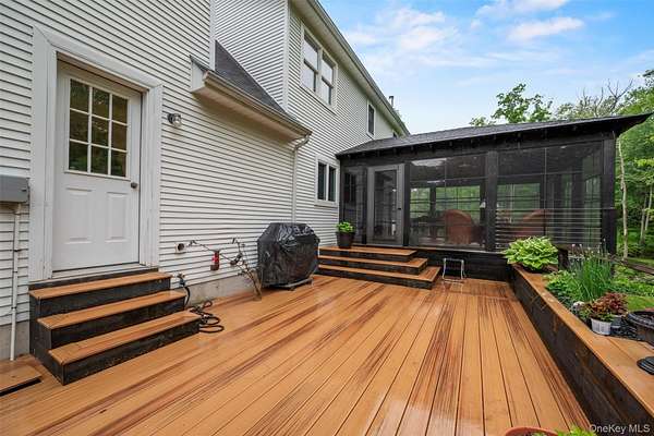 Exquisite 4 bedroom 3 bath colonial , timeless grandeur meets modern luxury nestled gracefully on a private cul de sac. Amidst meticulously manicured grounds, this colonial style home offers an unparalleled blend of classic elegance and contemporary comfort, from the moment you approach the stately wrought iron fenced property and are greeted by a wrap around porch, you are welcomed by a grand foyer, and you experience a magnificent and undeniable sense of elegance. The main level unfolds with exquisite architectural details, including extensive crown molding, recessed lighting and hardwood floors throughout. Ornate lighting and dazzling chandeliers add a touch of sophisticated brilliance to every space. The inviting formal living room features custom built-ins that softly illuminate cherished collections, perfectly complemented by french doors leading to the family room with additional access to the wrap-around front porch- an idyllic spot for morning coffee or evening relaxation. The kitchen boasts top of the line stainless steel appliances, a generous pantry and a convenient built in desk. Adjacent to the kitchen, a spacious laundry room offers ample storage and utility. A cozy family room features a charming wood burning fireplace, creating a warm and inviting atmosphere, while a beautifully appointed half bath serves guests on the first floor. Off the eat in kitchen step into the outstanding three season sun room, where retractable windows invite the outdoors in, creating a seamless connection with nature and providing a serene escape. The second floor features plush carpeting that ensures comfort and tranquility. The sanctuary of the primary bedroom suite awaits, featuring dramatic cathedral ceilings and dual expansive closets. The custom primary bathroom is a spa like retreat, designed for ultimate relaxation with radiant heated floors and an oversized shower. The double vanity is a one of a kind custom built vanity by a local artisan. Three additional generously sized bedrooms provide ample space for family or guests. Beyond the interior, the property continues to shine. The expansive back deck is an entertainer's dream complete with self watering planters for effortless gardening. The fully fenced backyard enveloped by mature landscaping, ensures privacy and keeps wildlife at bay, offering a secure haven for recreation and outdoor enjoyment. Further enhancing this magnificent home are a two car garage and a full unfinished walk out basement presenting endless possibilities for customization- imagine a home theater, private gym, home office, additional living space.This is more than just a home. It is a lifestyle. Schedule your private tour today.