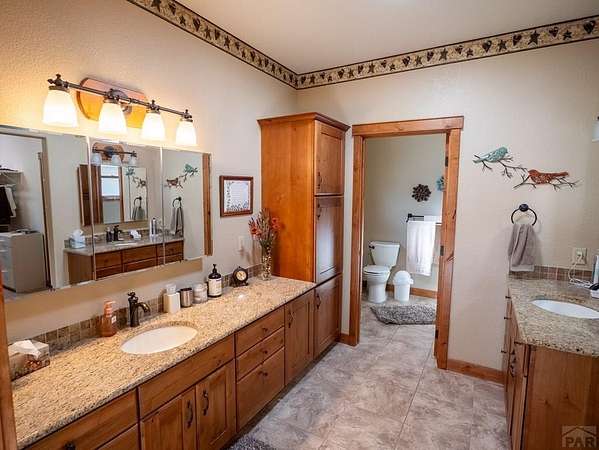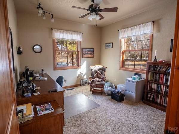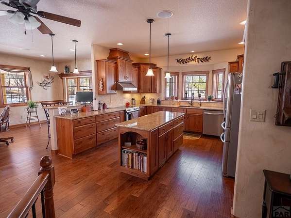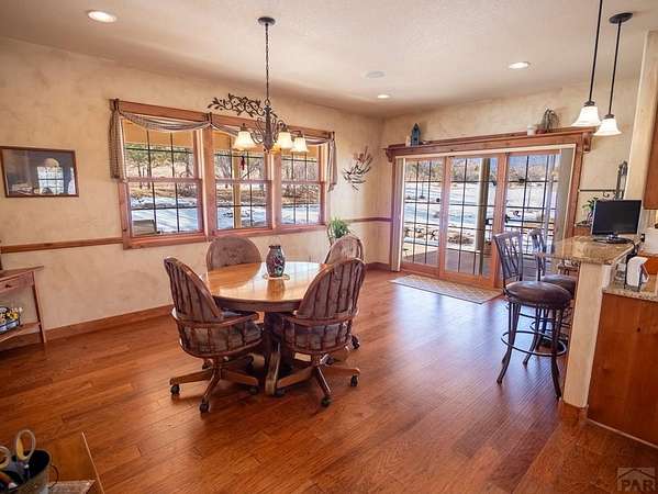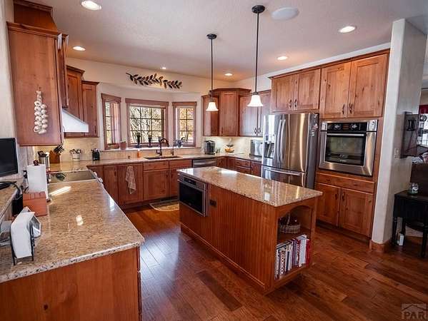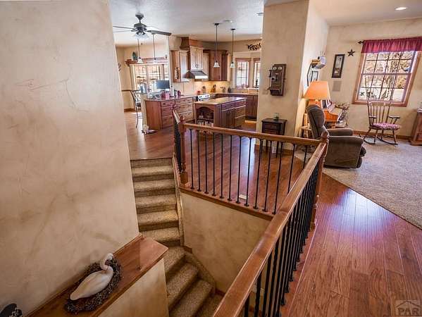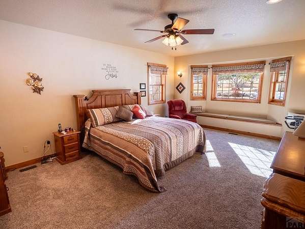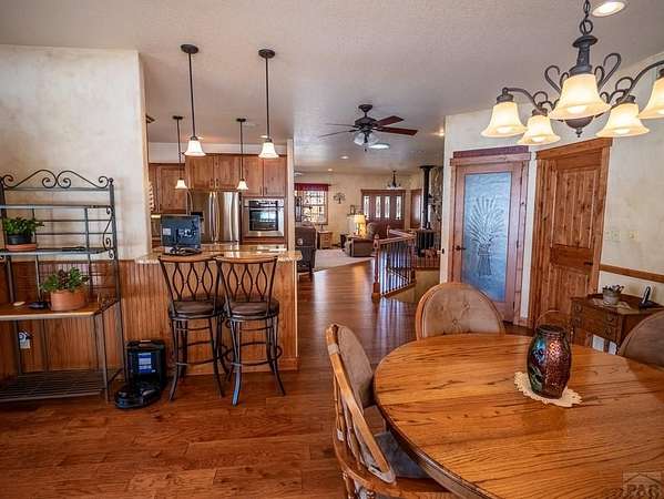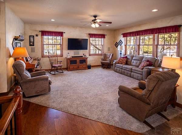 Nestled in the serene foothills of Colorado City, 5 Garden State offers everything you love about Colorado living - sweeping mountain views, peaceful surroundings, and space to truly breathe. This 5-bedroom, 3-bath custom home perfectly balances luxury, comfort, and functionality. From the moment you step inside, you'll notice thoughtful details and warm craftsmanship that make this property stand apart. The heart of the home is a spacious open-concept living area with large windows that frame the beautiful views of the Greenhorn Mountains. The kitchen is designed for both gourmet cooking and casual gatherings, while the primary suite offers a relaxing retreat with its private bath. Equipped with a whole home central vacuum, leaf guards, home generator makes this home low maintenance. Outdoors, you'll find wildlife right at your back door and plenty of room to explore your own private slice of nature. A two-car attached garage plus a RV detached garage and workshop provide ample storage and RV parking, RV outlet and RV dump station, making this home ideal for hobbyists, adventurers, and anyone who loves room to roam. Located just minutes from Lake Beckwith, Hollydot Golf Course, local dining, and I-25 access, this property combines small-town tranquility with modern convenience. NEW ROOF installed Feb 2026 with Class IV shingles!