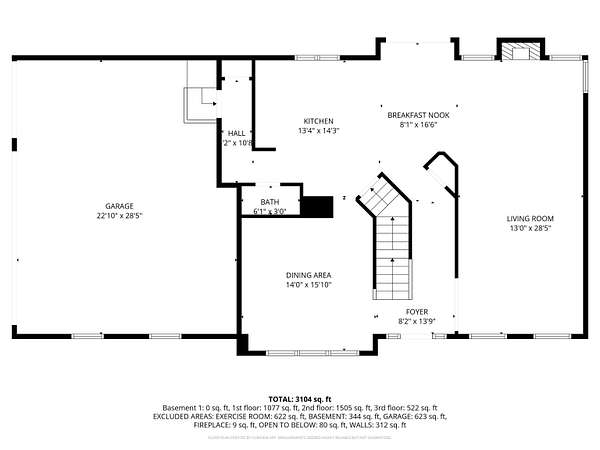 - Basement, Bathroom x 3, Bedroom x 4, Bonus Room, Dining Room, Kitchen, Living Room