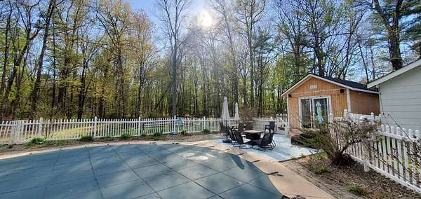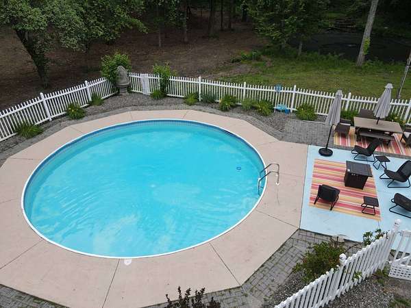 If privacy and seclusion is what you seek... You found it!! This breathtaking property features 8 acres complete with an in-ground pool and pond for all to enjoy. Hang out at the pool or take a nature walk on your own property. There is also a pool house (re built on 2025 with seasonal bathroom) and an outdoor fireplace perfect for cooking and entertaining. Also check out the oversized two car garage.... Now on to the house... Completely renovated the home features 2 ample size bedrooms and a bath on the first floor and a huge master suite up the brand new staircase. Both baths have gorgeous tile work and stunning vanities. Kitchen is also completely redone with quartz countertops and stainless steel appliances and check out the cool farm style sink. Off the kitchen you will find a family room with gleaming hardwood floors and a brick fireplace that is in working order. Also off the kitchen is a light filled sunroom with plenty of windows. The living also features oak hardwood floors and a stone fireplace. If all this is not enough take a meander down to the basement and check out the 36X13 Theater room complete with built in benches and a large screen w/projector already installed. Just bring the popcorn. Oh and I forget to mention a BRAND NEW ROOF AND SKYLIGHTS. All this tucked between popular Kingston and quaint Saugerties. This is a must see!!! The house price is for the unfurnished property, but you get the option of buying the furniture and decoration and even the almost brand new tractor.