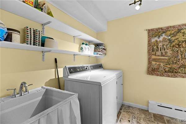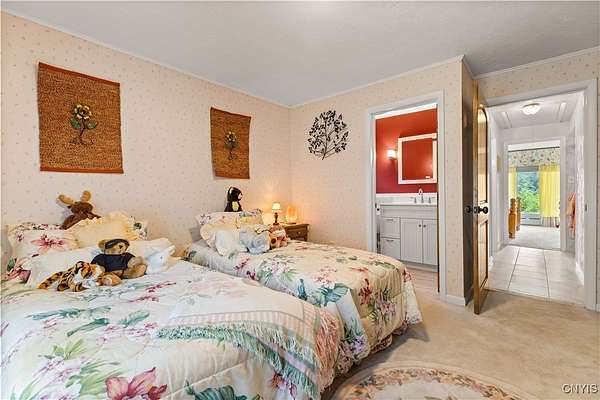 Welcome to a truly exceptional classic home, where a grand entrance sets the tone for an unparalleled living experience. This estate offers the perfect blend of timeless architecture and luxurious modern amenities, nestled on a sprawling 2.9-acre property featuring a tranquil creek. Step inside and be greeted by a sense of grandeur and sophistication. The heart of this home is the chef's dream kitchen, boasting a professional Viking stove, a convenient prep sink, and a central vacuum system for effortless cleanup. An inviting wet bar off the kitchen is perfect for entertaining guests. Relax and unwind in comfort with the added luxury of radiant heated floors in the kitchen , laundry room and hallways . Each of the four bedrooms offers a private, well-appointed bathroom, ensuring convenience and privacy for everyone. The finished basement provides versatile space for a home gym, office, and workshop, offering endless possibilities for relaxation, work, or creative pursuits. Beyond the main living spaces, discover a heated garage complete with an air compressor - perfect for hobbies or maintaining vehicles. Outside, your private oasis awaits. The expansive fenced in backyard features a luxurious swim spa, ideal for year-round enjoyment and relaxation. Explore the picturesque grounds and enjoy the calming sounds of the creek bordering the property. This property is a haven of luxury, functionality, and tranquility. It's more than just a house; it's a lifestyle waiting to be embraced.