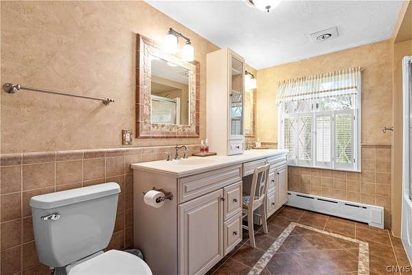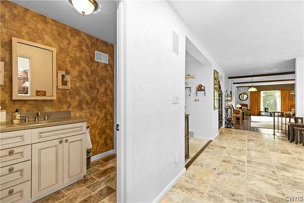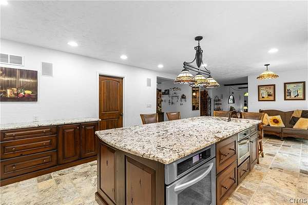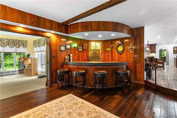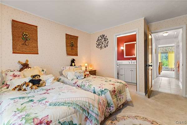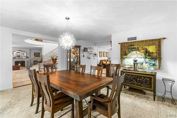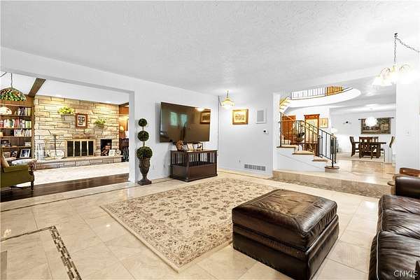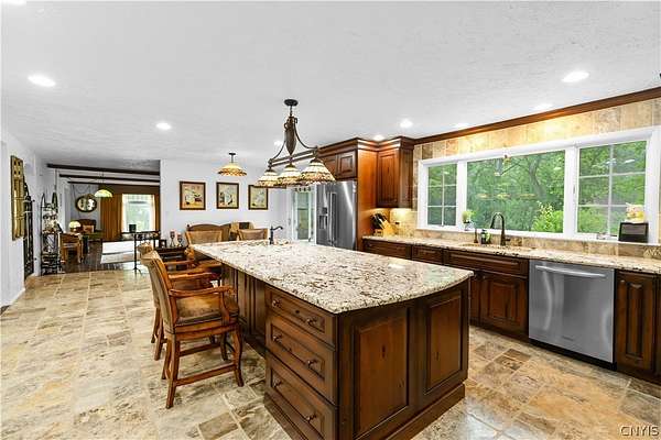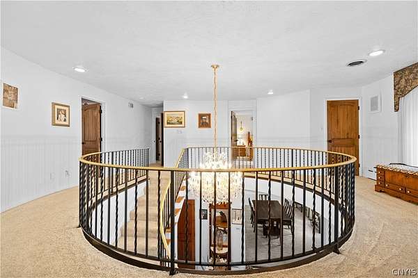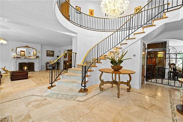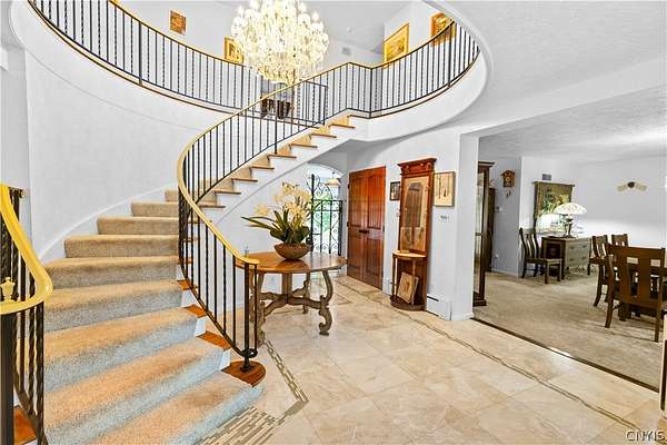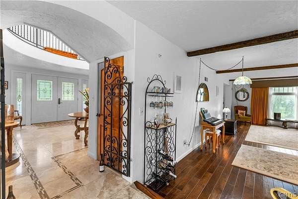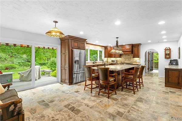 Step into timeless elegance in this exceptional classic estate, where a striking entryway welcomes you into a home designed for both comfort and sophistication. Set on 2.9 picturesque acres with a peaceful creek running along the property, this residence offers a rare blend of traditional charm and modern luxury. At the center of the home is a beautifully designed chef's kitchen featuring a professional Viking range, prep sink, and central vacuum system for easy cleanup. Just off the kitchen, a stylish wet bar provides the perfect space for entertaining family and guests. Radiant heated floors throughout the kitchen, laundry room, and hallways add an extra level of comfort year-round. Each of the four spacious bedrooms includes its own private bathroom, creating a perfect balance of convenience and privacy. The finished lower level offers flexible space for a home office, fitness area, workshop, or recreation room-ideal for today's lifestyle needs. Additional highlights include a heated garage equipped with an air compressor, making it perfect for car enthusiasts, hobbies, or projects. Step outside to your own private retreat. The expansive fenced backyard features a luxurious swim spa for relaxation and year-round enjoyment. The beautifully maintained grounds and gentle sounds of the bordering creek create a serene setting that feels both peaceful and secluded. Offering a unique combination of luxury, functionality, and natural beauty, this remarkable property is more than just a home-it's a place to truly enjoy everyday living.