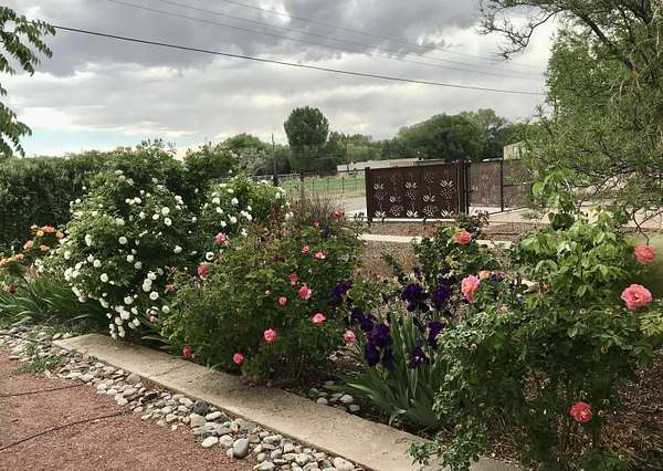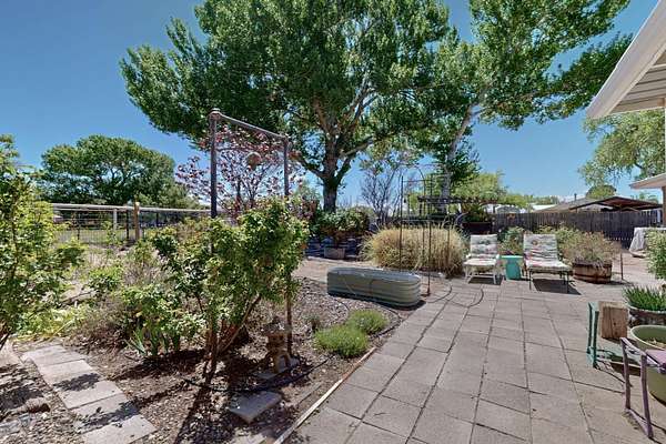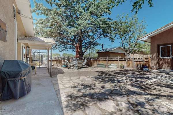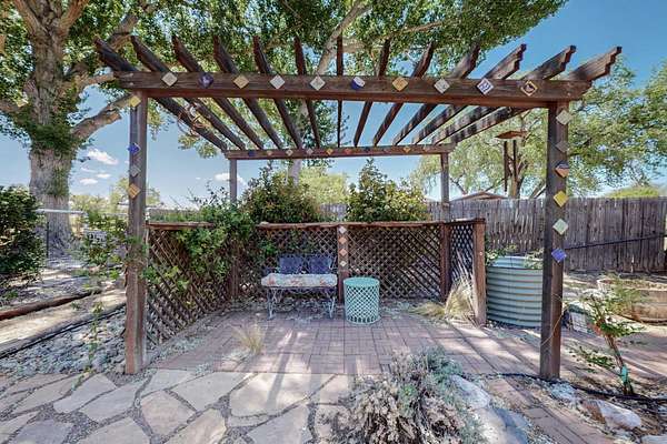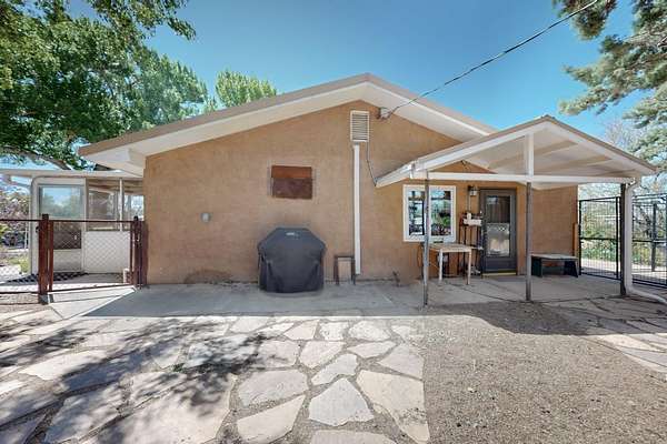 Work in Albuquerque - relax and play in Peralta! This beautifully maintained 3 BR, 2 BA home sits on 2 fully fenced acres with ditch irrigation rights and solar, offering comfort, privacy, and self-sufficiency a short commute from Albuquerque. A custom electric privacy gate opens to a peaceful property with lush gardens. Inside, enjoy an open, functional layout complemented by refrigerated air, a country kitchen with maple cabinets, new alderwood doors and trim, new sliding doors to the garden, a reverse osmosis water filter, and a whole-home water softener. A home office with its own entrance and private courtyard features a ductless minisplit heating and cooling and a cozy gas fireplace for winter days.