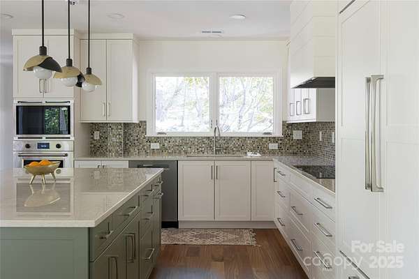 - Dishwasher, Disposal, Double Oven, Electric Water Heater, Exhaust Hood, Gas Cooktop, Microwave, Refrigerator, Wall Oven