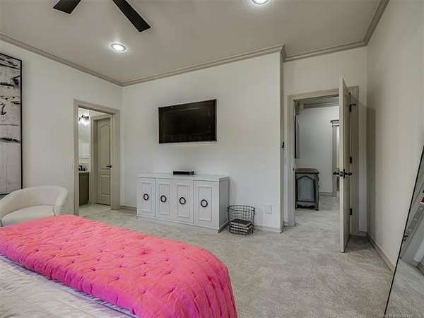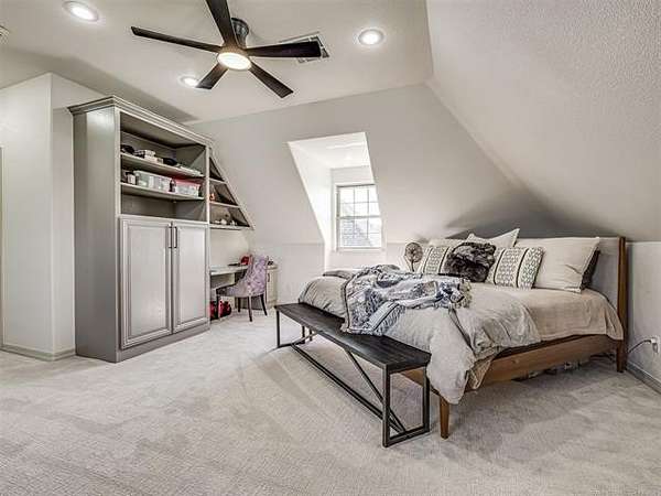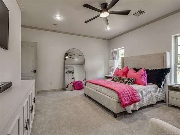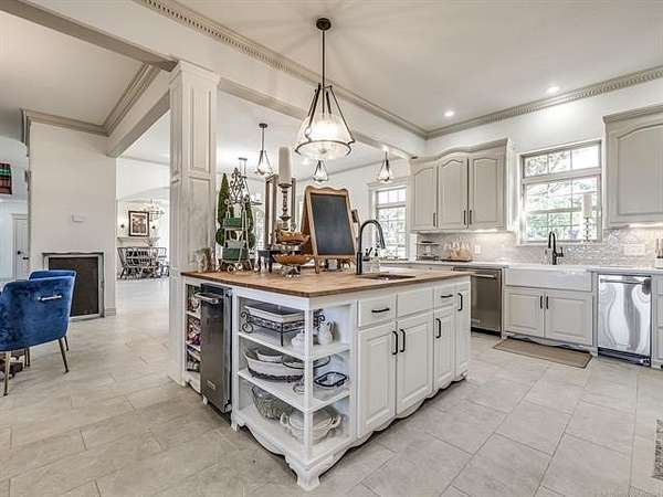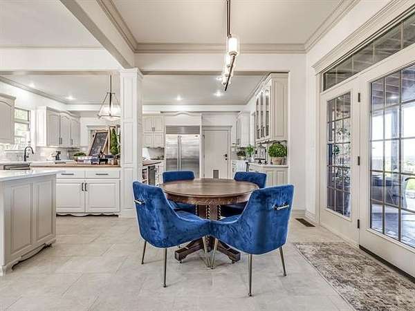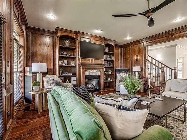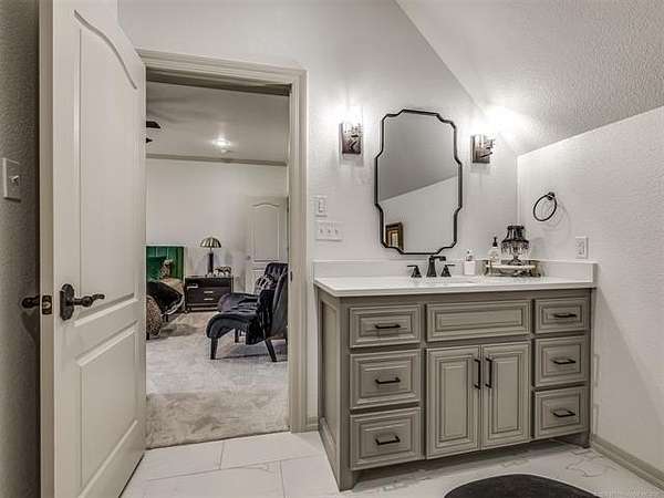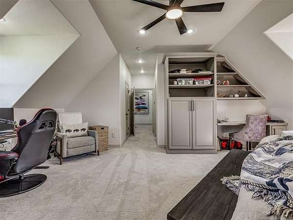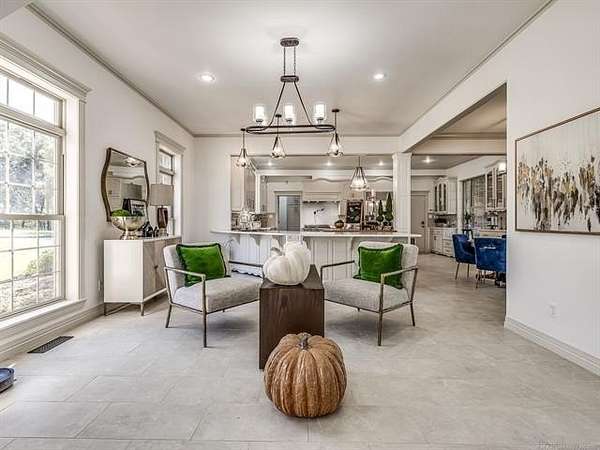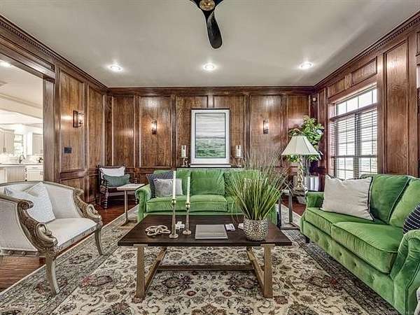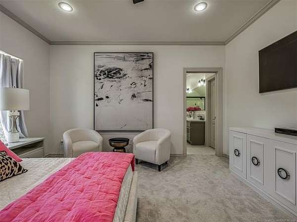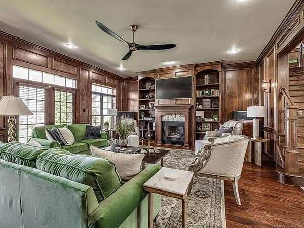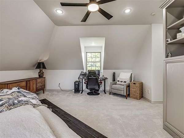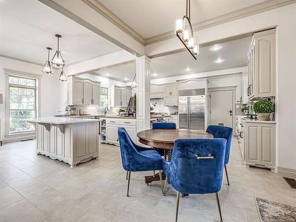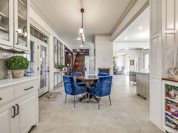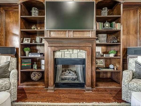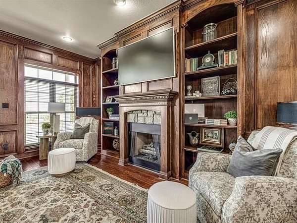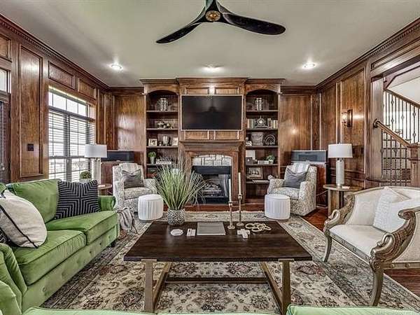 The luxurious master suite includes a private sitting room with a cozy fireplace and a spa-inspired en suite bath. The home also features a renovated man cave/game room/speakeasy/office--a versatile and stylish space perfect for entertaining, working from home, or unwinding in style.