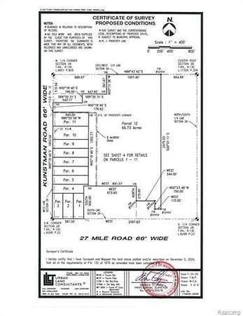 A parcel of land in the WS 1/4 of Section 28, T.4N., R,13E., Ray Township, Macomb County, Michigan is described as: Commencing at the WS corner of Section 28; thence N.00 degrees 19'40"E., 631.00 feet along the west line of Section 28 to the Point of Beginning; thence continuing along said line N.00 degrees 19'40"E., 165.00 feet; thence Due East, 660.00 feet; thence S.00 degrees 19'40"W., 165.00 feet, Due West, 660.00 feet to the Point of Beginning and containing 2.500 acres. Subject ot the rights of the public for highway purposes along Kunstman Road and to all other easements of record.