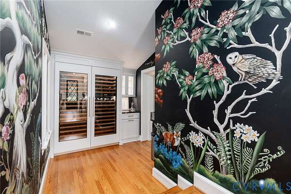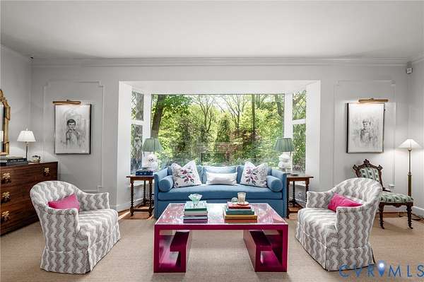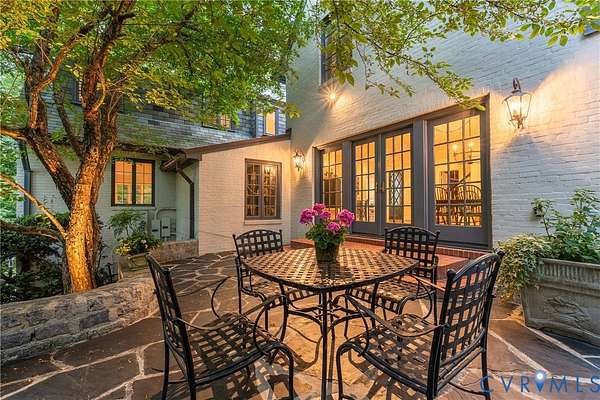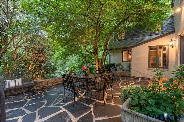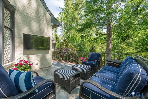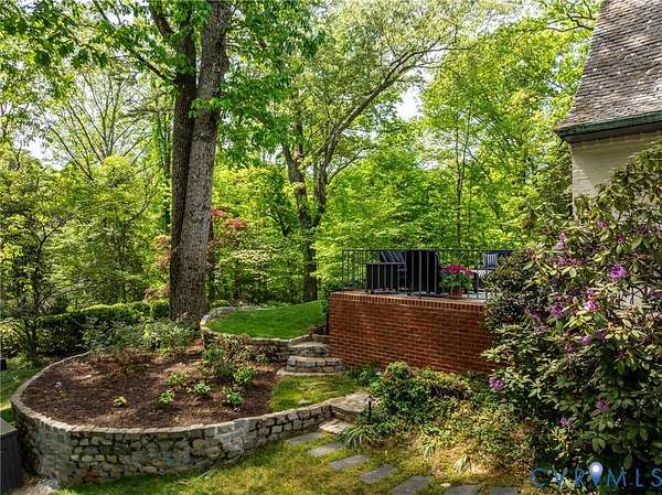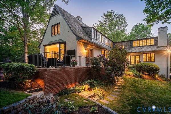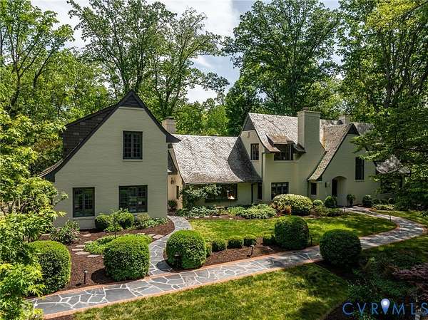 Tucked away on a private 3+ acre lot in the sought-after River Road corridor, this one-of-a-kind storybook brick and slate home blends timeless charm with refined elegance. A welcoming foyer introduces hardwood floors, 9-foot ceilings, crown moulding, and gracious formal and informal spaces ideal for everyday living and entertaining. Sun-filled living and dining rooms feature stunning picture and bay windows that frame the picturesque outdoor setting. The living room offers a gas fireplace and French doors to a slate and brick patio, while the dining room includes a built-in corner cabinet and elegant millwork. A cozy library with built-ins and gas fireplace allows for a tucked away retreat. The spacious family room has a wood-burning fireplace, built-ins, beverage refrigerator, and patio access. A striking wine bar with floor-to-ceiling wine refrigerator connects seamlessly to the gourmet kitchen with bistro tile flooring, gas fireplace, marble island, custom cabinetry, and premium appliances including Sub-Zero, Wolf, Dacor, and Miele. An informal dining area opens to a peaceful slate patio. A well-designed mudroom offers custom cubbies, extra refrigerator, and stackable washer/dryer. Upstairs, the primary suite features a dressing area, walk-in closets, and luxurious ensuite bath with double sink vanity, soaking tub and marble shower. Three additional bedrooms, 2 more full baths, and a convenient laundry room round out the second floor. There is a private second floor wing with its own staircase offering the 5th bedroom, full bath and seperate home office. The finished walk-out basement includes new carpet, full bath, fireplace, built-ins, and storage. Multiple patios, tiered gardens, and mature landscaping create exceptional outdoor living. This gorgeous property is truly not to be missed!!