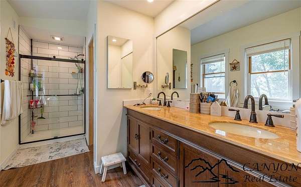 Discover the perfect Wyoming country home with acreage, just 10 minutes from downtown Cody! Situated on a 5.74-acre corner lot with deeded irrigation water rights, this well-maintained property offers everything you need for peaceful rural living - including a horse-ready setup, stunning views, and modern comforts. This spacious home features a welcoming open floor plan with vaulted ceilings, a gas stove in the great room, a kitchen/dining area, a bright living room, two main-floor bedrooms, and a full bathroom. Upstairs, you'll find two master bedrooms and a cozy loft office nook - ideal for remote work or creative space. The home has been recently updated throughout the interior, making it move-in ready. Outdoors, enjoy the privacy of mature trees, breathtaking mountain views, and a large backyard deck perfect for entertaining. The property includes an oversized two-car detached garage, a metal horse barn with tack room, fenced pastures, covered horse stalls, and a fully fenced backyard for pets. There's also plenty of space for RV parking and other equipment. Located on the Powell/Cody Highway, this equestrian property near Cody offers the ideal blend of country living with easy access to town amenities. Whether you're looking for a horse property in Wyoming, a ranch-style home with acreage, or a private homestead close to Cody, this listing checks all the boxes.
