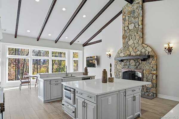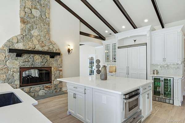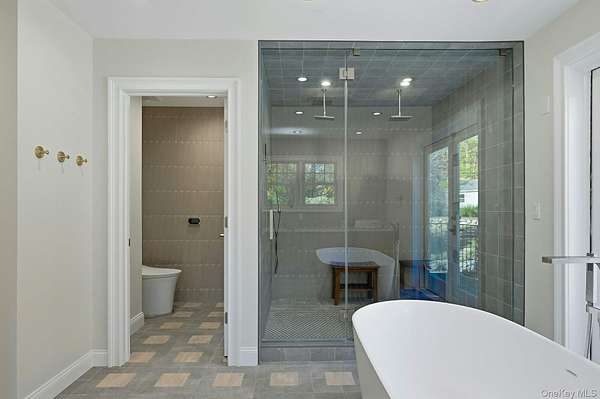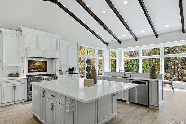 Discover the lifestyle at 5 Mallard Dr as you enter the brick pillars of this private road association that leads you down to a breathtaking beach. Completely renovated and located in the Incorporated Village of Lloyd Harbor, this home sits on 2.6 acres in the Cold Spring Harbor School District. Impressive mahogany doors welcome you into this 5/6 bedroom ,4 bath expansive home where elegance meets tranquility. Walls of windows invite the outdoors inside from every vantage point. Revel in the enormous kitchen , with 2 islands, Viking appliances, 8 burner gas stove, wine refrigerator and 2 sided fireplace , adjacent to the family room. The dining room features a lovely curved tray ceiling with coffered inlay . The primary bedroom suite is a spa-like retreat you will want to linger in ,featuring a gigantic shower , soaking tub , 2 sink vanity and separate water closet, 2 walk in closets and more. Additional home features include radiant heat flooring, soaring ceilings, full house generator & heated 3 car garage. Continue outside to custom landscaping , hardscaping, rock walls, slate patios and a large outbuilding for a kids getaway or golf simulator hangout space. Private Beach and road association (1000 per year) and Lloyd Harbor beach and park has tennis, camp, boat ramp and mooring (fee).Cold Spring Harbor School District #2
