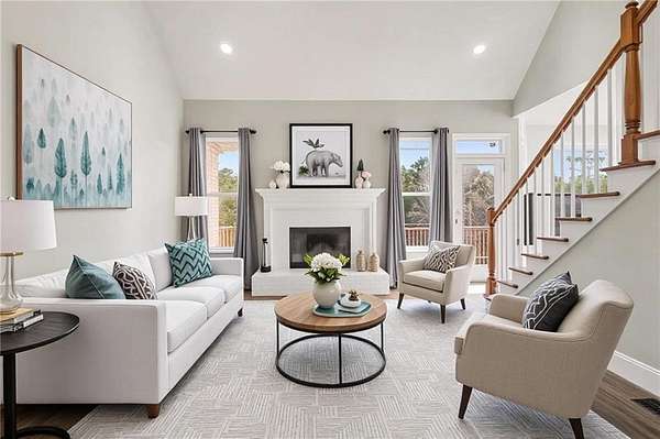Welcome home to this beautifully maintained residence nestled in a quiet, desirable Senoia community. From the moment you arrive, you're greeted by a perfectly manicured front lawn and a gorgeous front porch that sets the tone for warm welcomes and peaceful evenings. Inside, the home offers an open, light-filled floor plan designed for both everyday living and effortless entertaining. The primary suite on the main level provides comfort and convenience, complete with a recently renovated spa-like primary bathroom. Luxury vinyl flooring flows throughout the main floor, while real hardwood floors upstairs add timeless character and durability. Step outside to a spacious, fully fenced backyard that feels like a private retreat. Whether you're hosting, relaxing, or making memories, the saltwater pool creates the perfect outdoor oasis. The partially finished basement adds incredible flexibility and is already stubbed for a bathroom, offering endless potential for expansion, recreation, or guest space. Ideal for families or anyone seeking quiet, comfortable living with room to grow, this home seamlessly combines style, functionality, and lifestyle - all in the heart of charming Senoia.