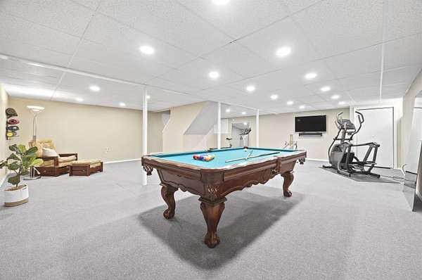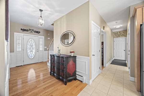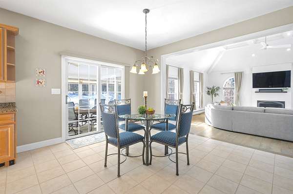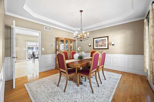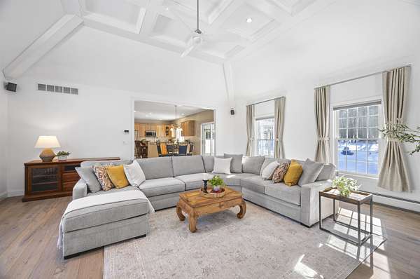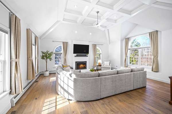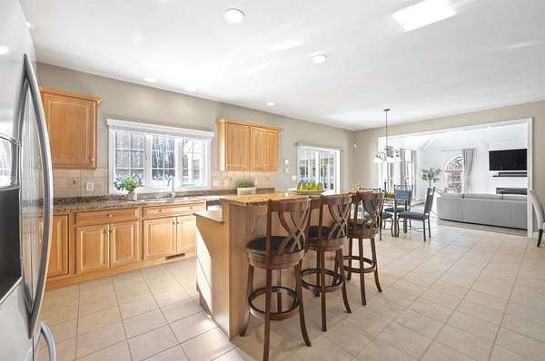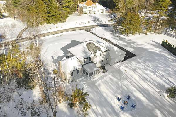 Located in a beautiful CUL-DE-SAC neighborhood, this elegant home has long attracted admirers from curb appeal alone. It sits majestically on over 2 acres of lush lawn with stone walls, woods and a PARK-LIKE BACK YARD, complete with FIRE PIT and stone PATIO. You can enjoy all of these views from the beautiful 3-SEASON PORCH with removable glass windows/screens that make this space perfect for dinner on cooler nights and breezy summer days! Inside you'll quickly realize the generous size of the welcoming foyer, elegant formal dining room with TRAY CEILING and a massive kitchen with newer stainless appliances, granite tops and so much room for wining, dining and entertaining. Enter the irresistibly handsome family room with soaring COFFERED CEILING, new GAS FIREPLACE w/ brick surround, Palladian windows and new wood flooring. On this level, you also have a bright formal living room off the kitchen, a large powder room w/ storage and a purpose-built laundry room, all perfectly positioned near the epoxy-floored 3-CAR GARAGE. Upstairs is filled with sunlight via skylights and big windows, starting with the oversized primary suite with vaulted ceiling, large walk-in closet and double-bowl tiled bathroom with loads of storage. Down the hall are 3 more bedrooms, all with nice sized closets, organizers and views of the picturesque grounds. The large FINISHED BASEMENT offers plenty of space for a big GYM, complete with TV W/ SONOS SOUND BAR, pool table and play area plus plenty of storage space in the most pristine unfinished basement area I've ever seen! Lovingly maintained and updated by the current owners, this home offers much peace of mind with a new roof, 2 new HVAC systems along with backup HW heating system, new driveway, flooring, LeafFilter gutter protection, granite light posts and irrigation. Conveniently located between the Village, schools, shopping and Jasper Valley, you will quickly fall in love with all that this popular TOP SCHOOL town offers. DON'T WAIT!