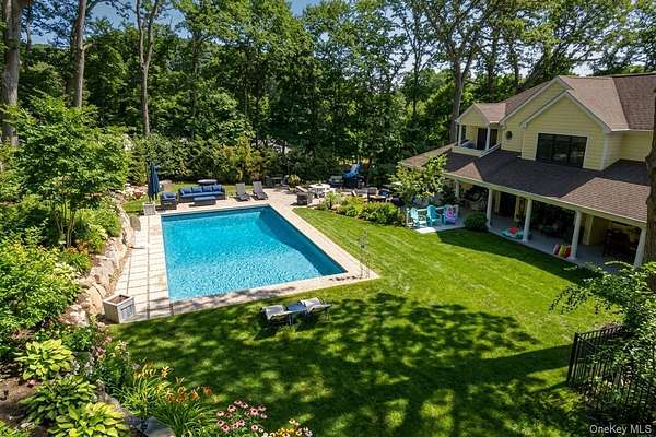 Welcome to 5 Ocean Ave, a spacious and inviting expanded Colonial set on approximately 1.6 acres of beautifully landscaped property in the heart of Northport. Offering about 4,500 sq ft of living space, this home features a classic wrap around porch, perfect for morning coffee or relaxing evenings. Inside, the home offers generously sized rooms, abundant natural light, and a flexible floor plan ideal for both everyday living and entertaining. The expansive grounds with mature trees provide exceptional privacy and a true retreat like setting. The backyard is a standout feature, showcasing an in-ground pool and patio area, ideal for summer gatherings, outdoor dining, and entertaining guests. The property offers a rare combination of space, character, and outdoor lifestyle. Conveniently located in Northport Village, shops, restaurants, parks, beaches, and transportation. A unique opportunity to own a special home with space, privacy, and exceptional outdoor amenities in a prime Village location.